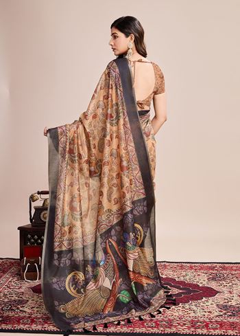 Featuring detailed woven prints throughout, this saree reflects careful craftsmanship and a keen eye for design. The matching multicolor linen blouse complements the saree perfectly, creating a cohesive and fashionable look. Each element is thoughtfully designed to blend traditional textile techniques with contemporary trends, making this saree a versatile choice for modern ethnic styling.