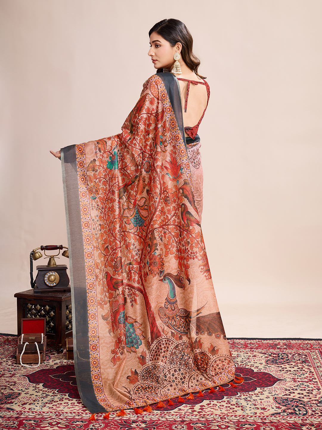 Multicolor Designer Printed Linen Fabric Partywear Saree For Trendy Designer Looks