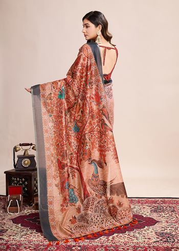Featuring intricate woven patterns, this saree reflects meticulous craftsmanship and attention to detail. The matching multicolor linen blouse complements the saree beautifully, creating a cohesive and polished outfit. Every design element combines traditional textile techniques with modern aesthetics, ensuring a standout ensemble for trendy ethnic wear lovers.