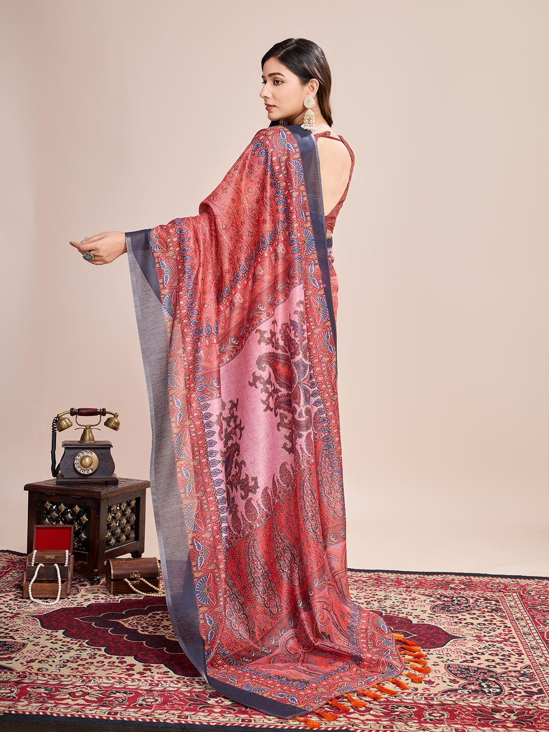 Multicolor Designer Printed Linen Fabric Partywear Saree For Trendy Designer Looks