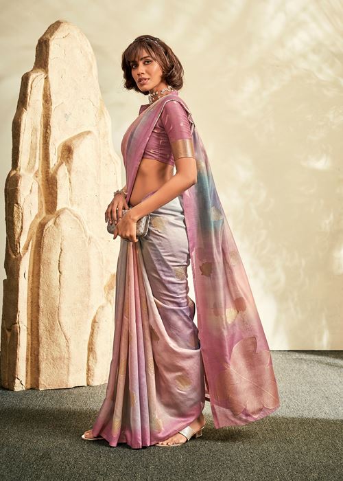 Multicolor Handloom Khadi Saree With Jacquard Woven With Digital Print