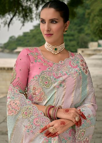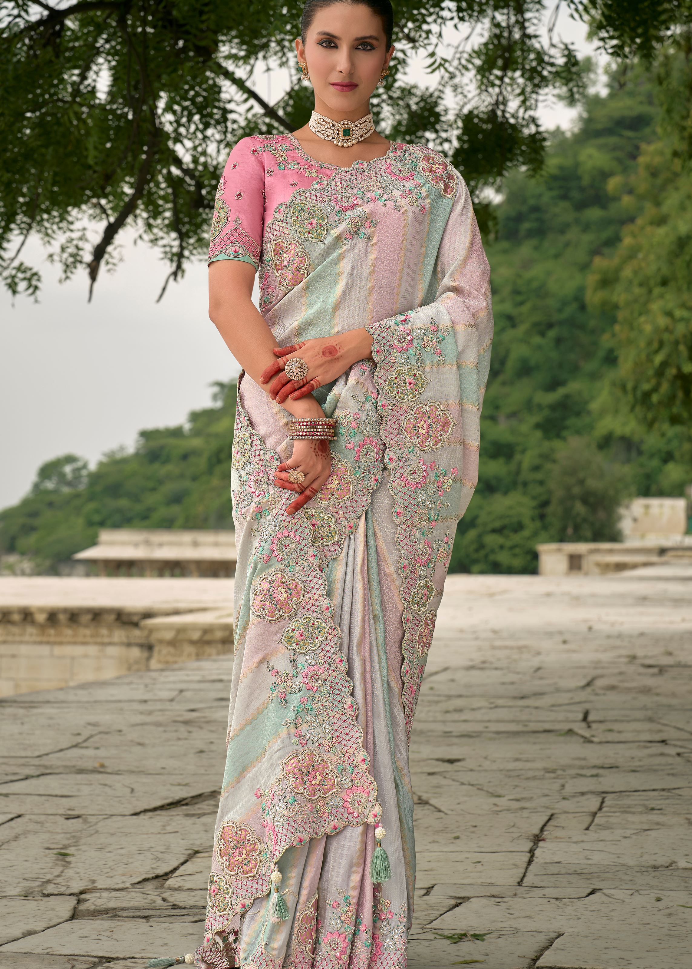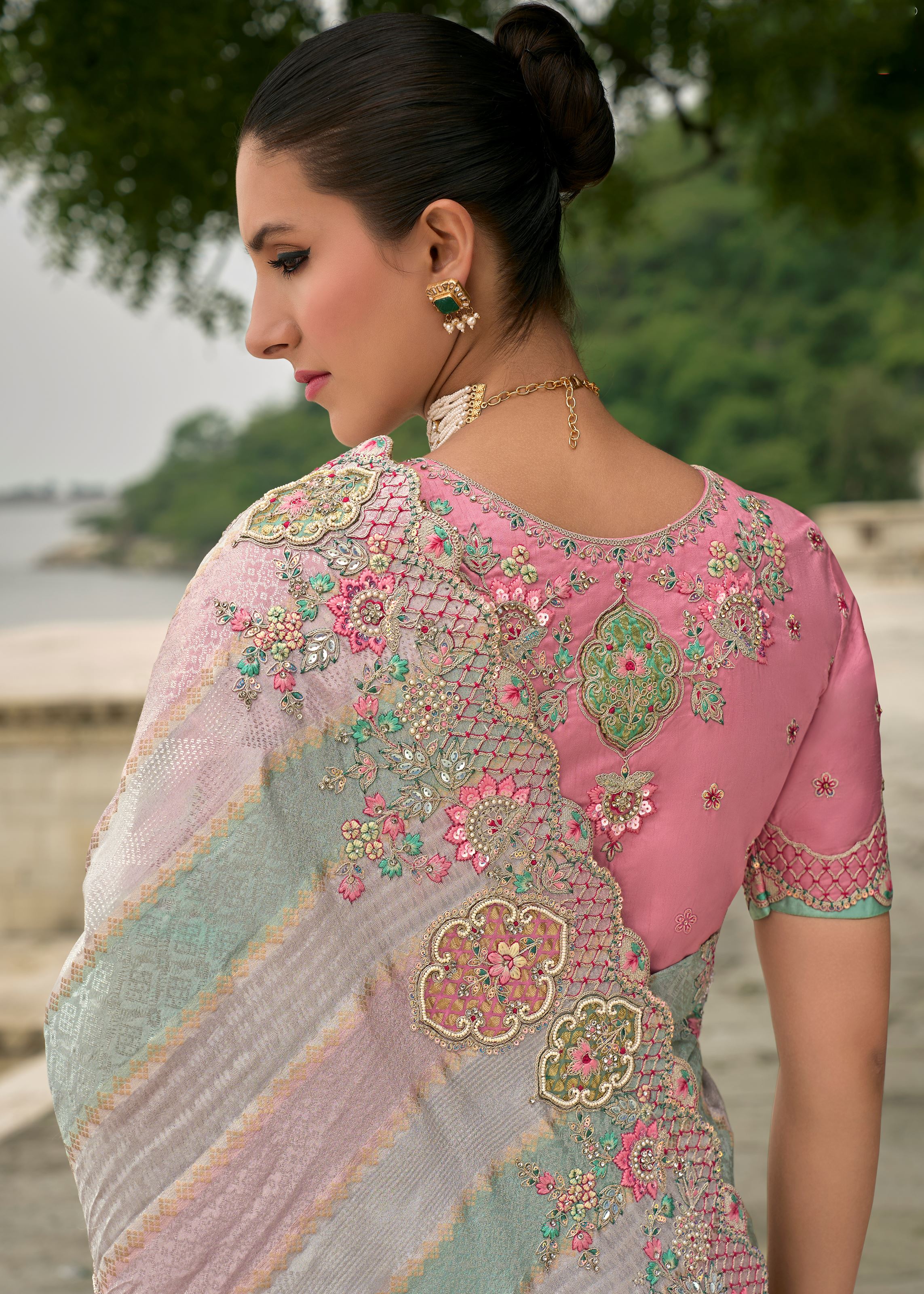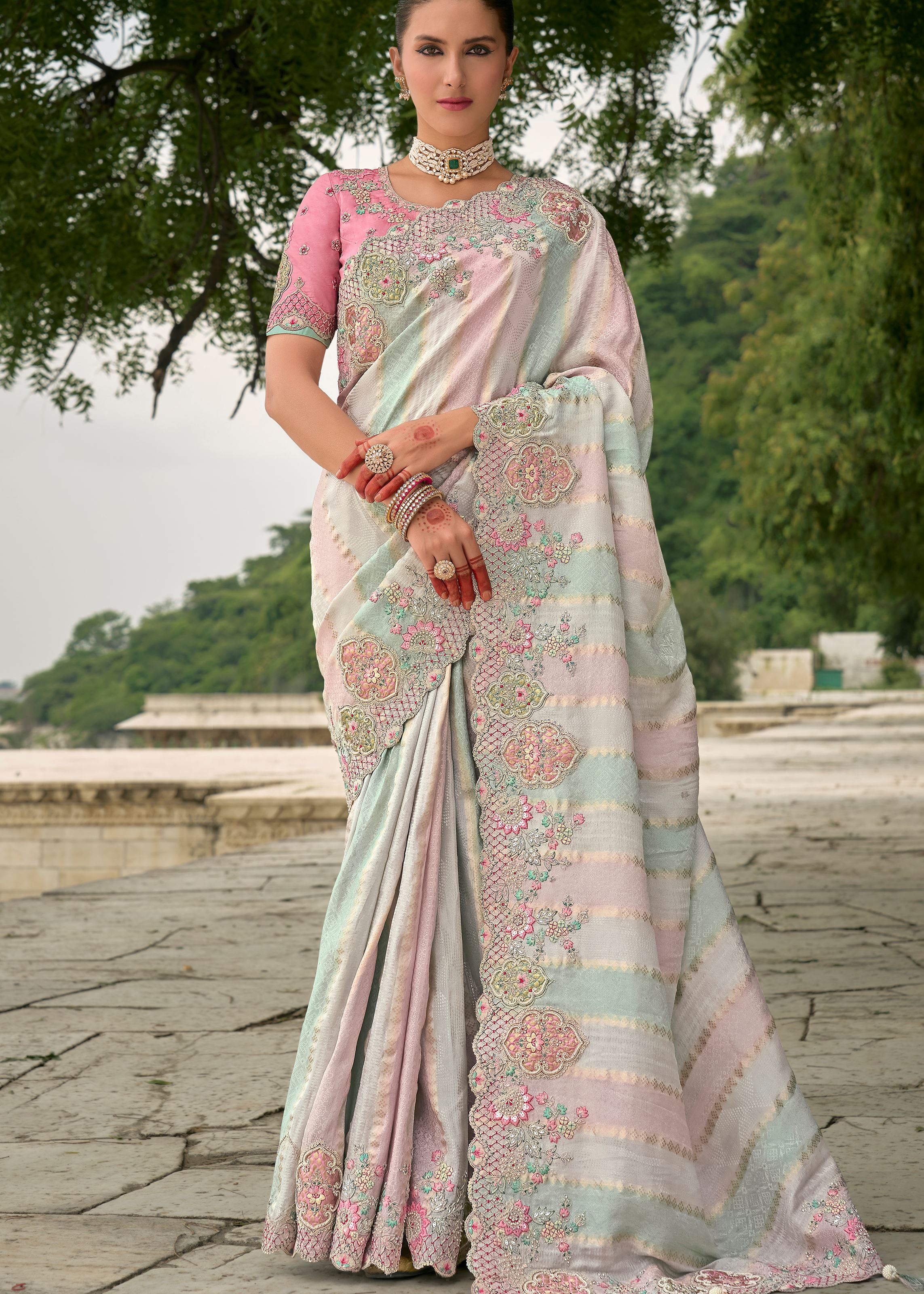 Multicolor Jacquard Saree With Heavy Thread Embroidery and Sequins Work