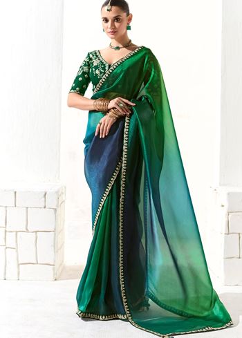 Multicolor Organza Tissue Saree With Heavy Work Border With Embroidered Blouse