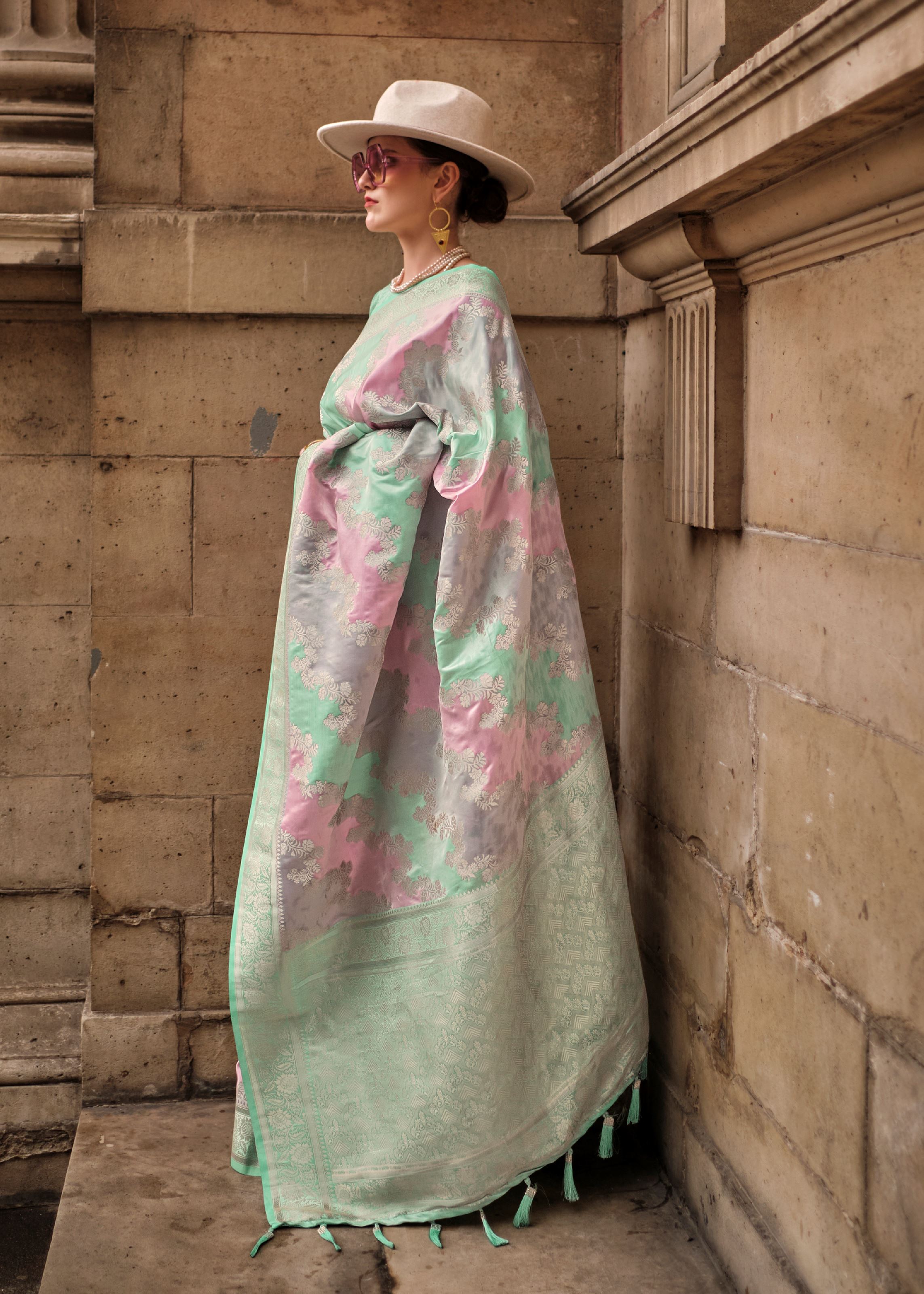 Multicolor Ranghat Satin Saree With Woven Work