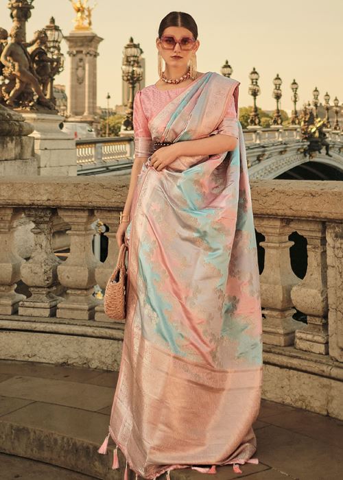 Multicolor Ranghat Satin Saree With Woven Work