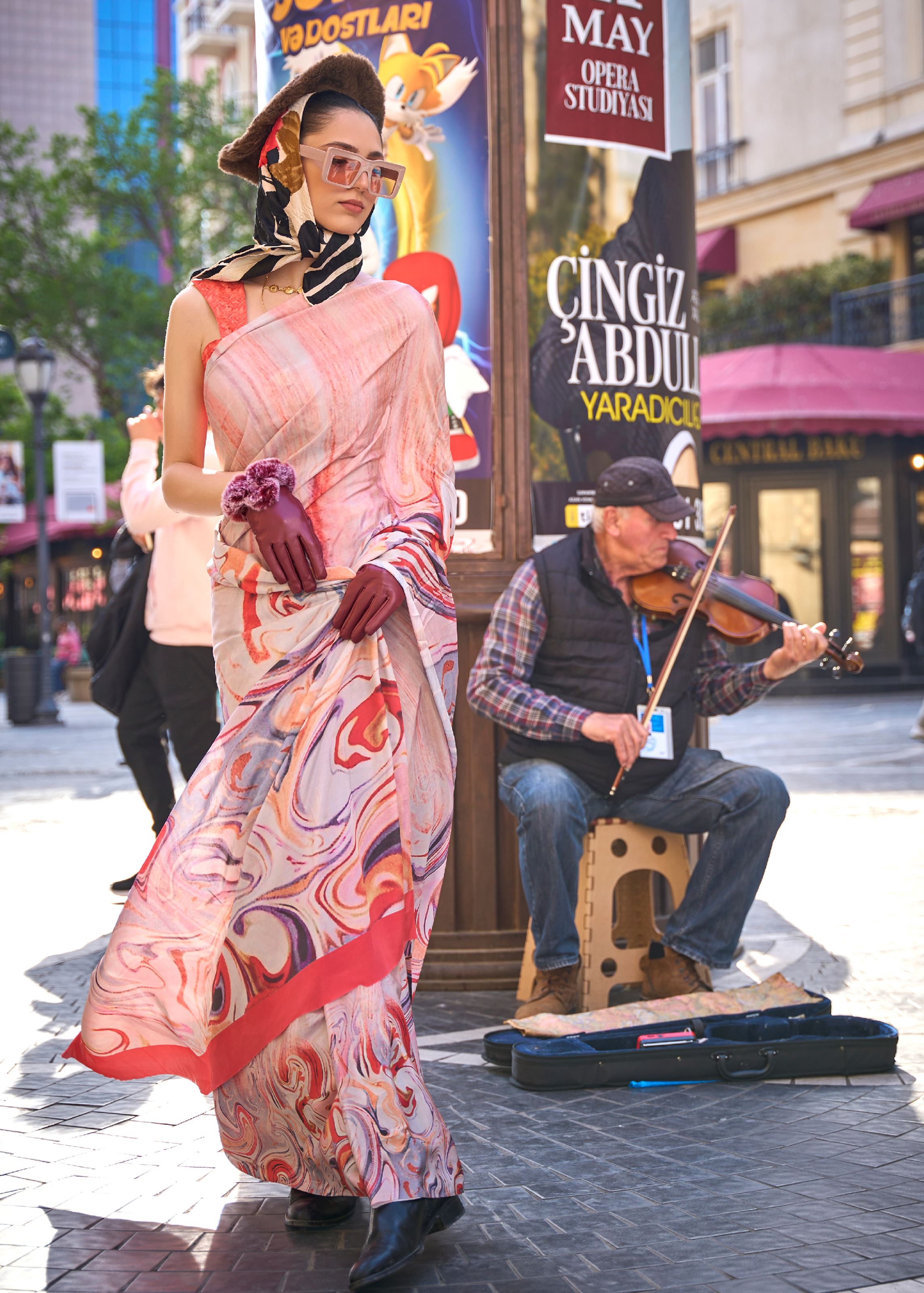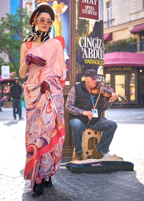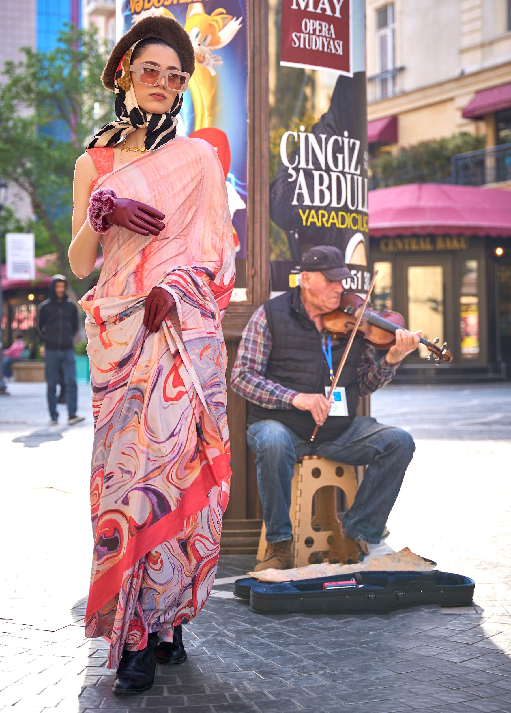 Multicolor Silk Crepe Saree With Digital Printed Work