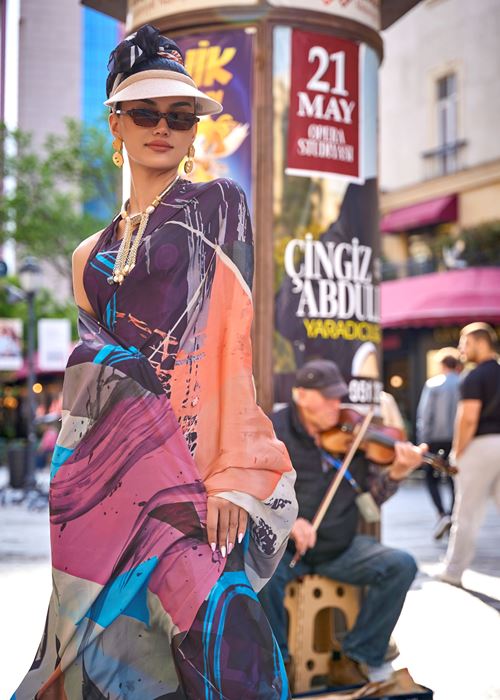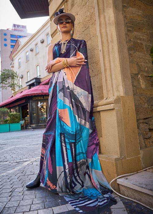 Multicolor Silk Crepe Saree With Digital Printed Work