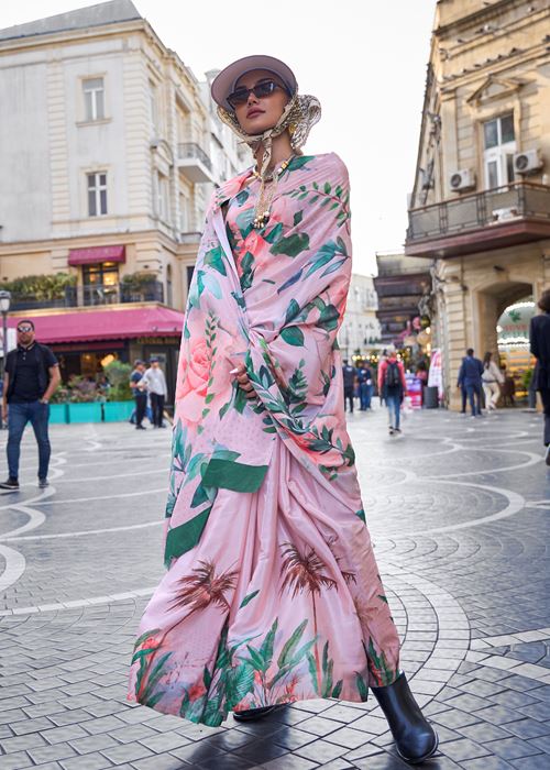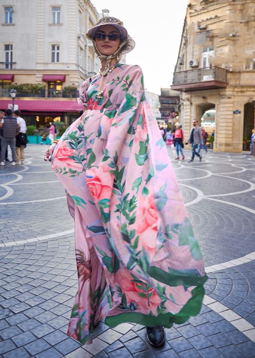 Multicolor Silk Crepe Saree With Digital Printed Work