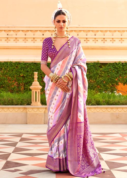 Multicolor Silk Saree With Printed With Jacquard Woven Work