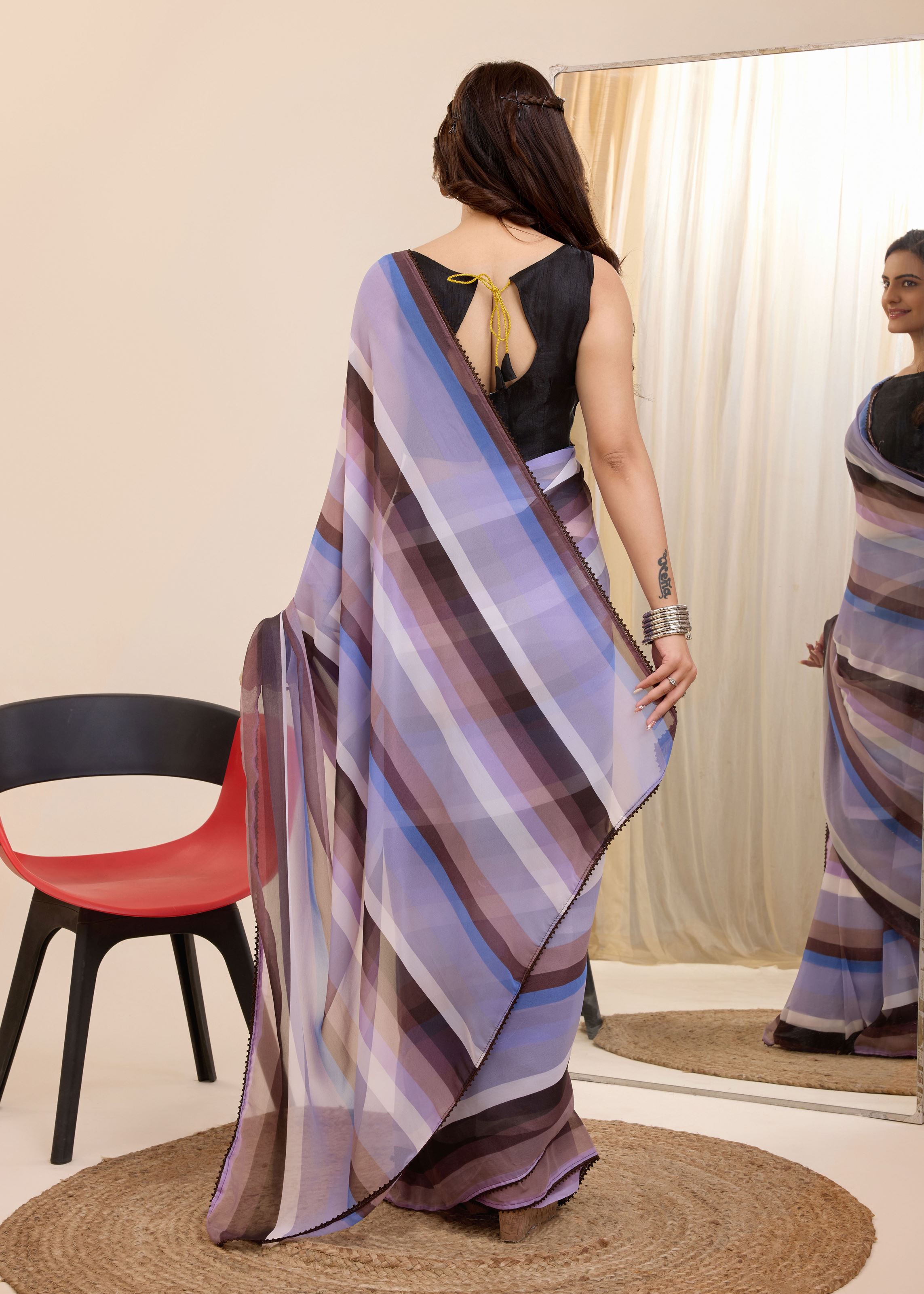 This ready-to-wear saree is ideal for women who love comfort without compromising on style. Its lightweight fabric makes it easy to drape and carry throughout the day, ensuring you stay fashionable and comfortable.Pair this saree with oxidized jewelry, statement earrings, or sleek heels for a chic ethnic look. Add this designer georgette printed saree to your wardrobe and make every occasion colorful and stylish.