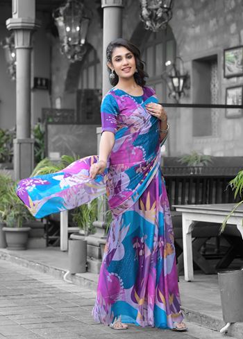 Multy Imported Georgette Designer Digital Printed Ready To Wear Gown Style Saree