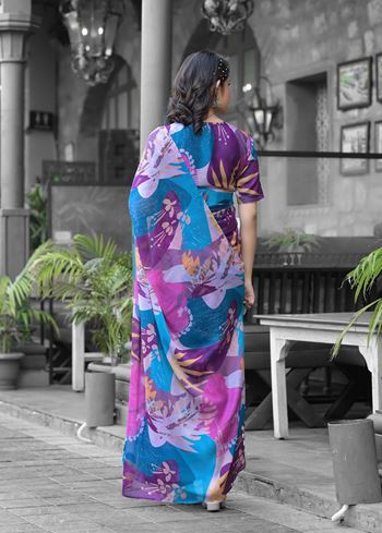 Make a bold statement with this Imported Georgette Designer Digital Printed Saree, styled in a contemporary gown look. Crafted from soft faux georgette, this ready-to-wear saree comes in vibrant multicolor shades, enhanced with digital prints for a chic and modern appeal. The matching multicolor faux georgette blouse perfectly complements the ensemble, offering effortless style without compromising comfort.