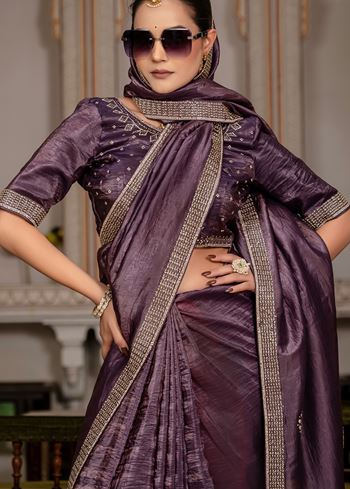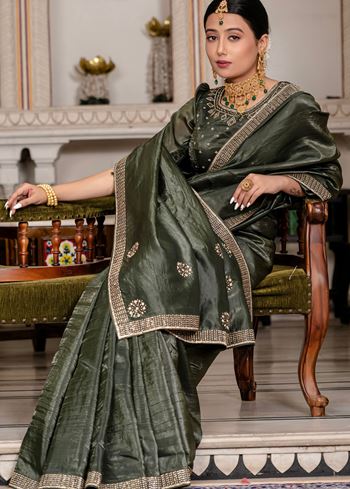 Mustard Color Gold Crush Saree With Cutdana With Zarkan Work