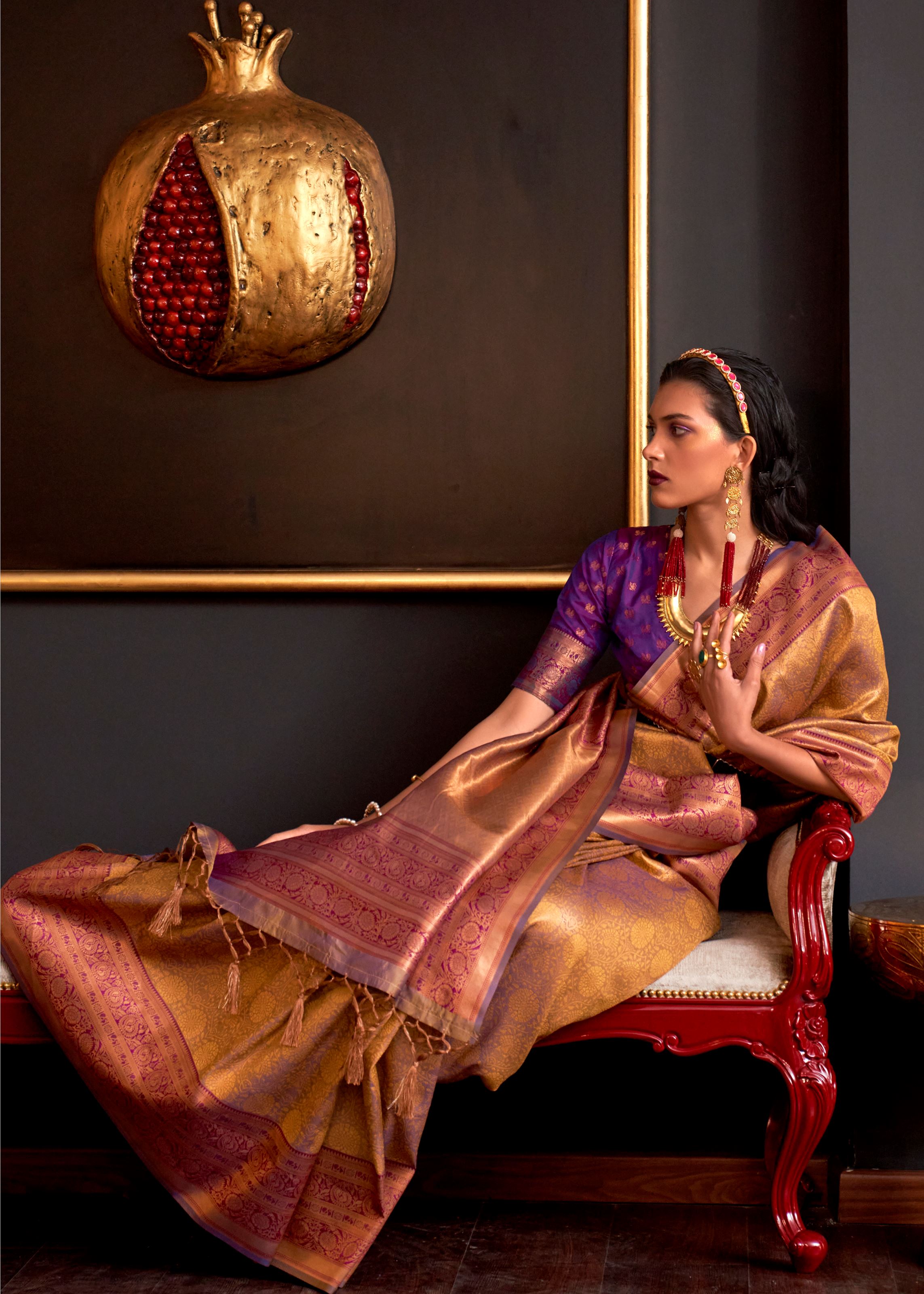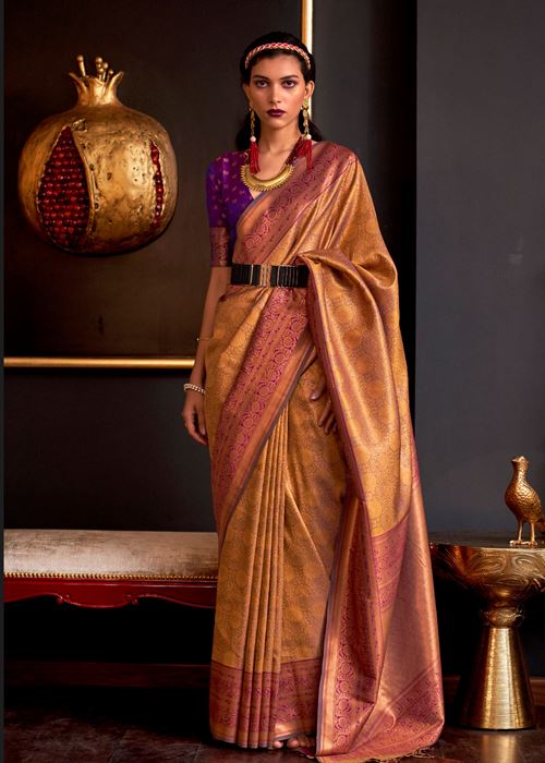 Mustard Handloom Weaving Silk Saree With Woven Work