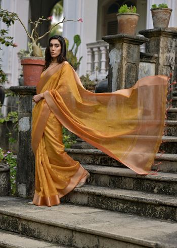 Mustard Kalyani Silk Elegant Designer Festive Wear Heavy Woven Designer Saree