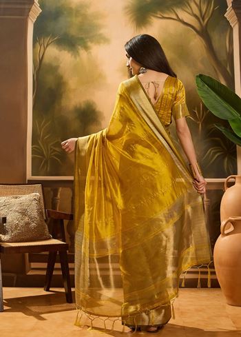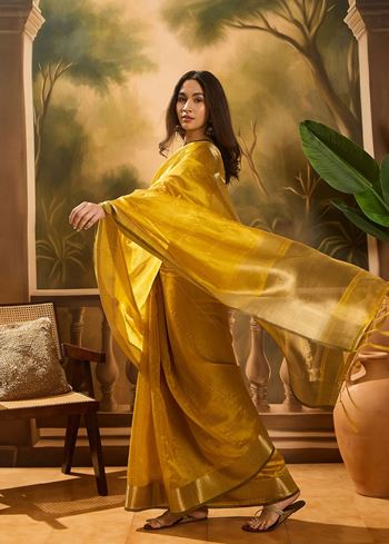 Mustard Khadi Organza Woven Jacquard Designer Ethnic Partywear Saree