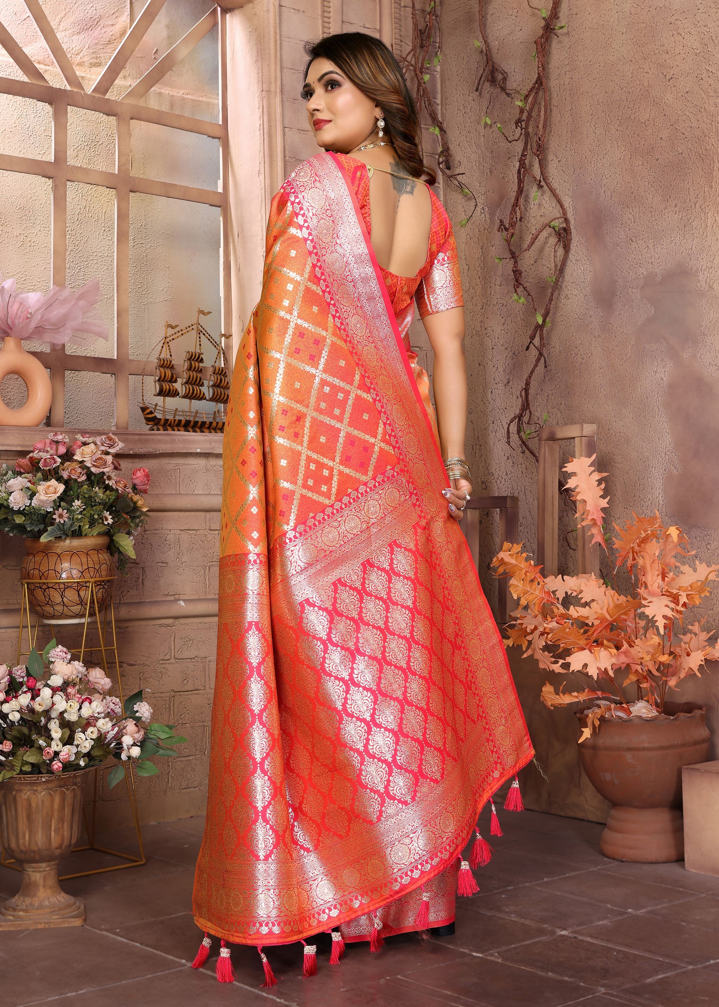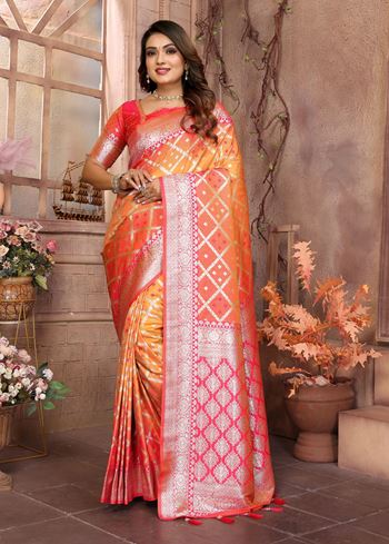 Paired with a contrasting pink silk blend blouse, this saree forms a striking and graceful look, perfect for weddings, festive occasions, and celebratory parties. The rich mustard shade adds warmth and vibrancy, making it a standout piece for those who wish to make a memorable impression. The delicate woven patterns enhance its classic ethnic appeal while maintaining modern elegance.