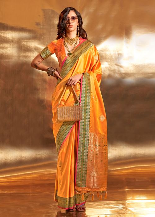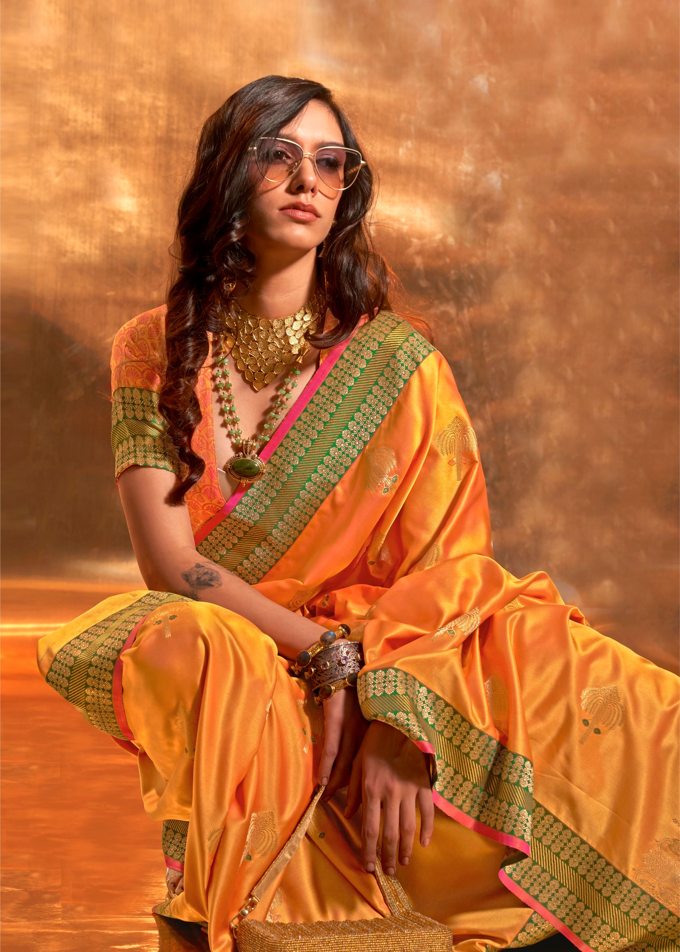 Mustard Pure Satin Silk Saree With Jacquard Woven Work