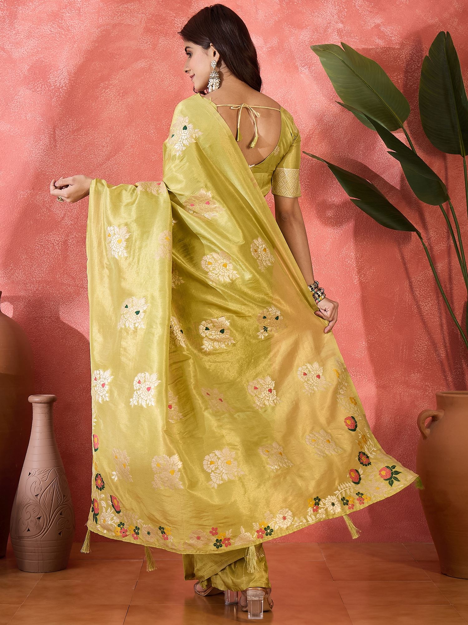 Mustard Shimmer Silk Woven Jacquard Designer Traditional Partywear Saree