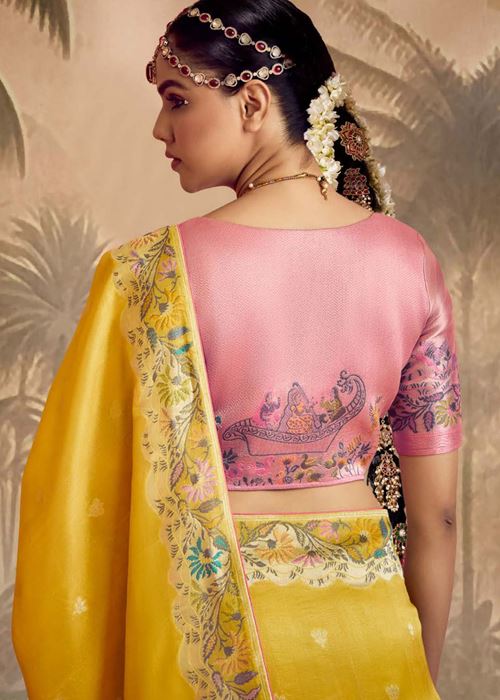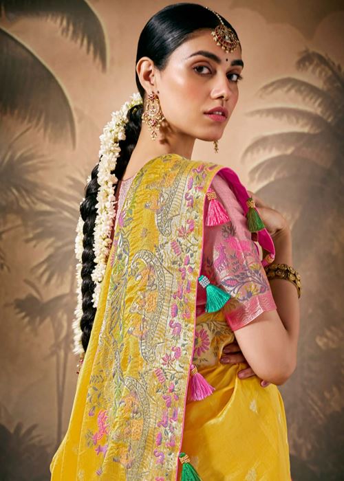 Mustard Silk Saree With Jacquard Woven