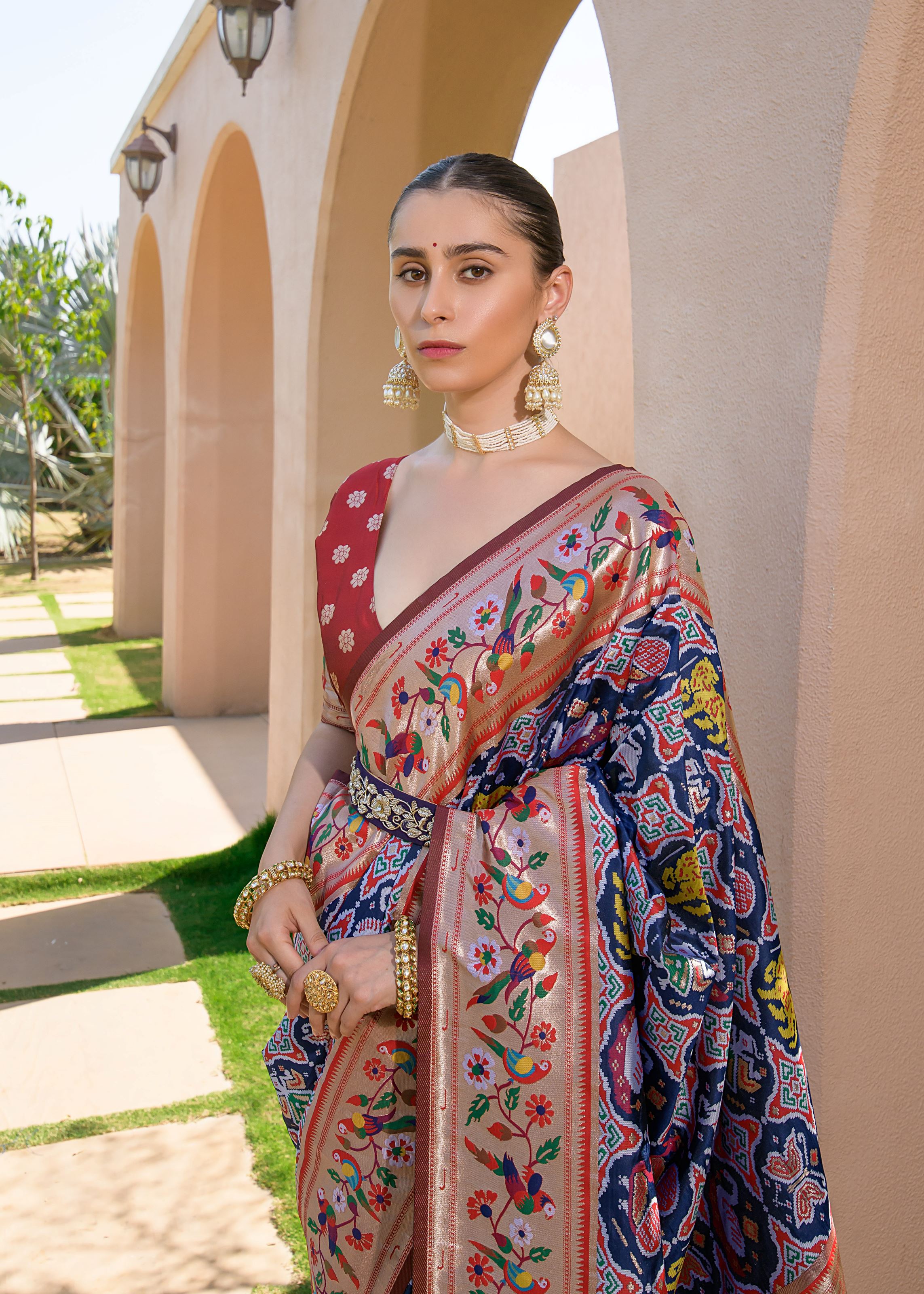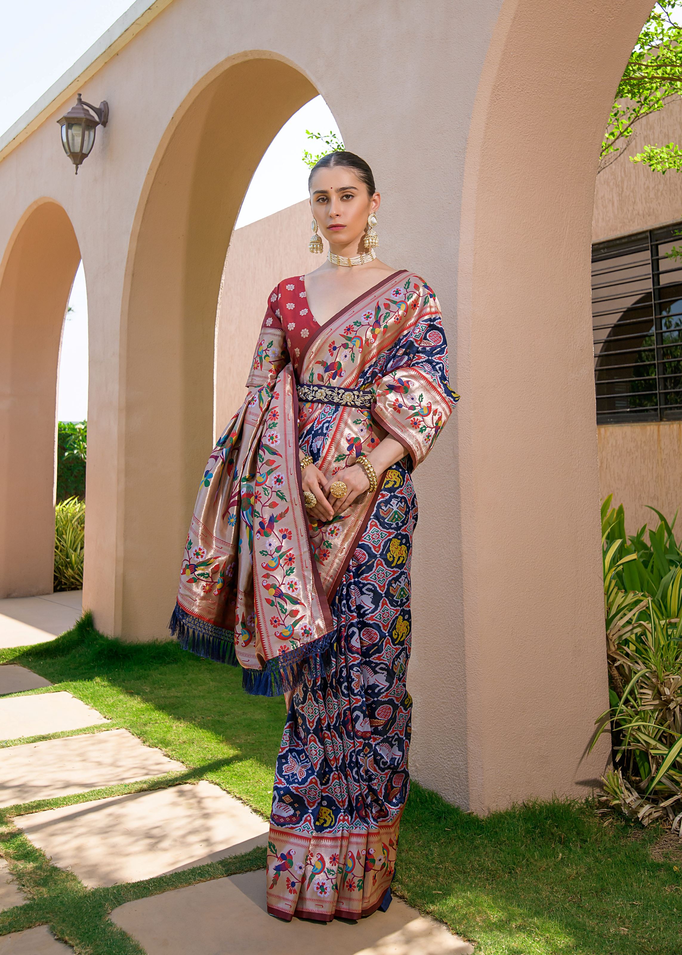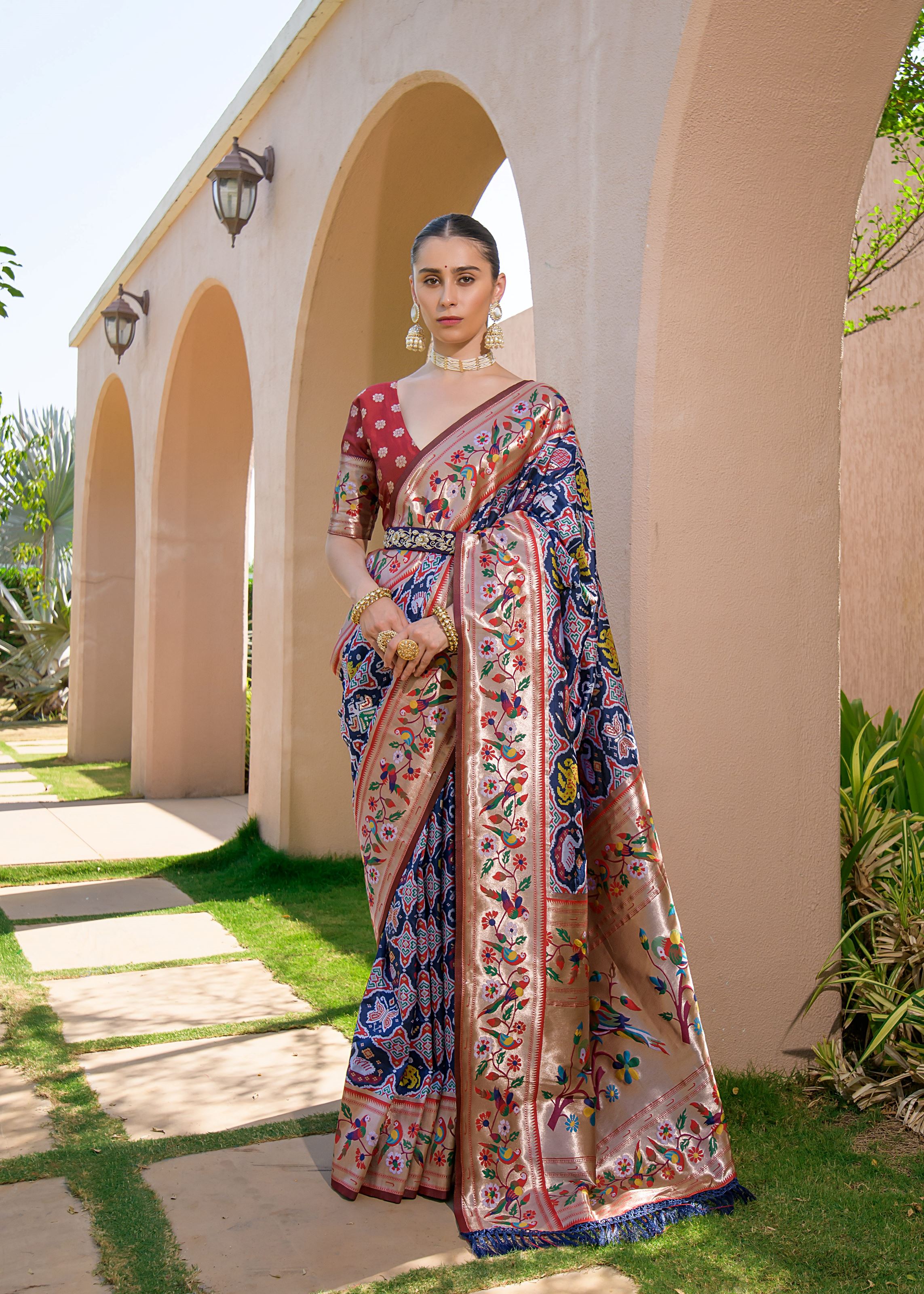 Navy Blue Paithani Silk Saree with Meenakari Zari and Pallu