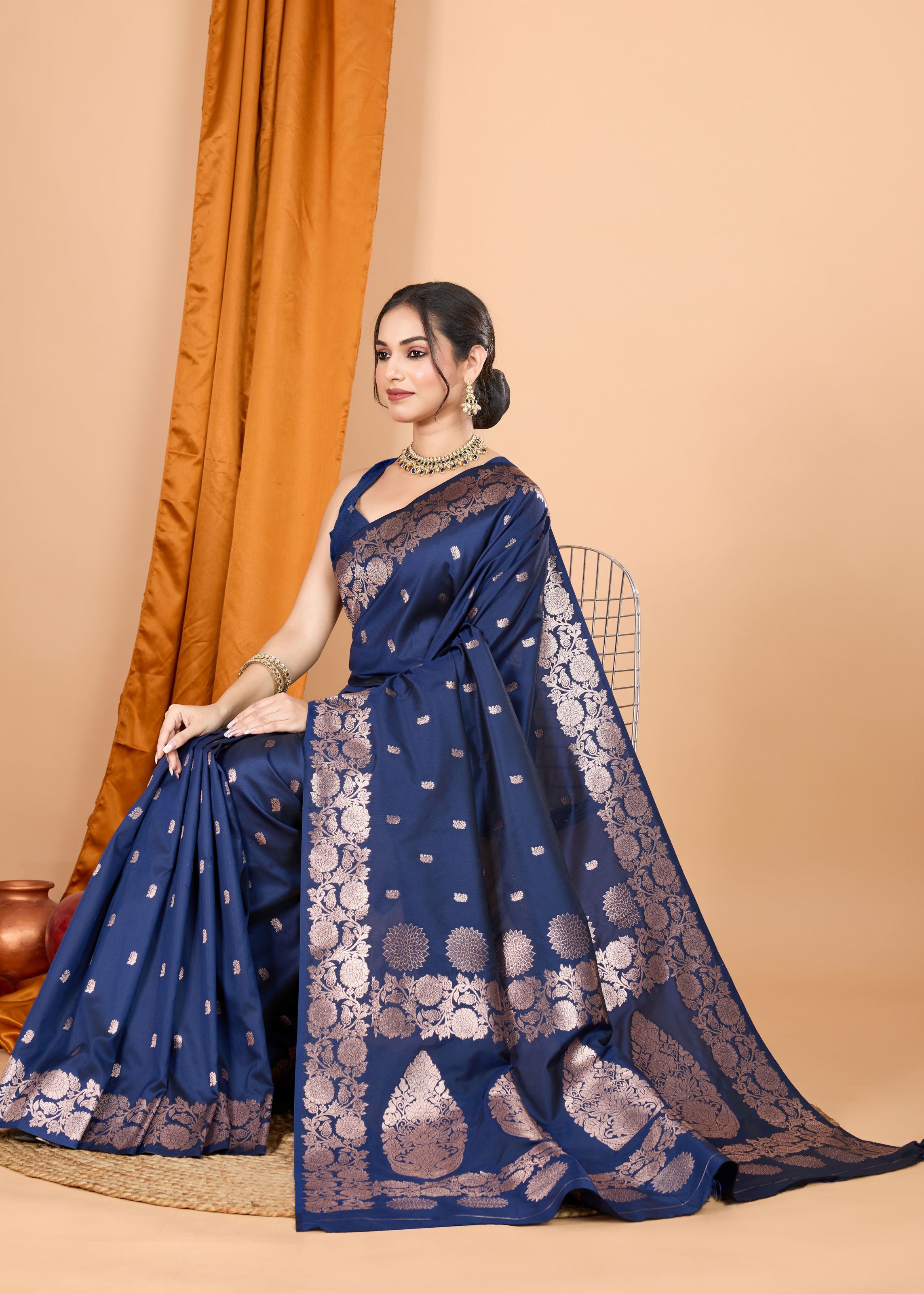Shop at Aethnofit Fashions’ online saree boutique to explore curated collections of designer styles, including Kanjeevaram, Banarasi, party wear, bridal, and trendy one-minute sarees. With affordable pricing, optional stitching services, and fast worldwide delivery, owning authentic Indian sarees is simple and convenient. Discover the latest 2025 trends, Bollywood-inspired blouse designs, and elegant ethnic fashion that blends traditional artistry with modern flair. Elevate your festive and wedding wardrobe with this luxurious navy blue Banarasi silk saree.