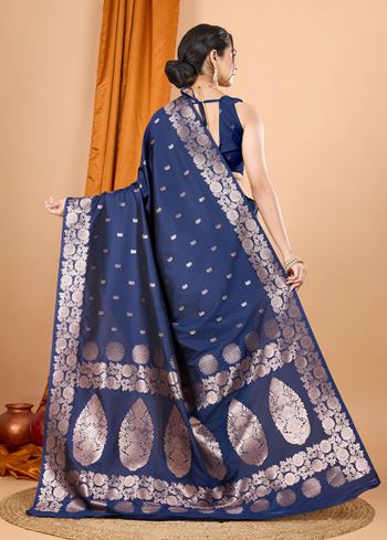 Navy Blue Rich Woven Jari Designer Banarasi Silk Saree