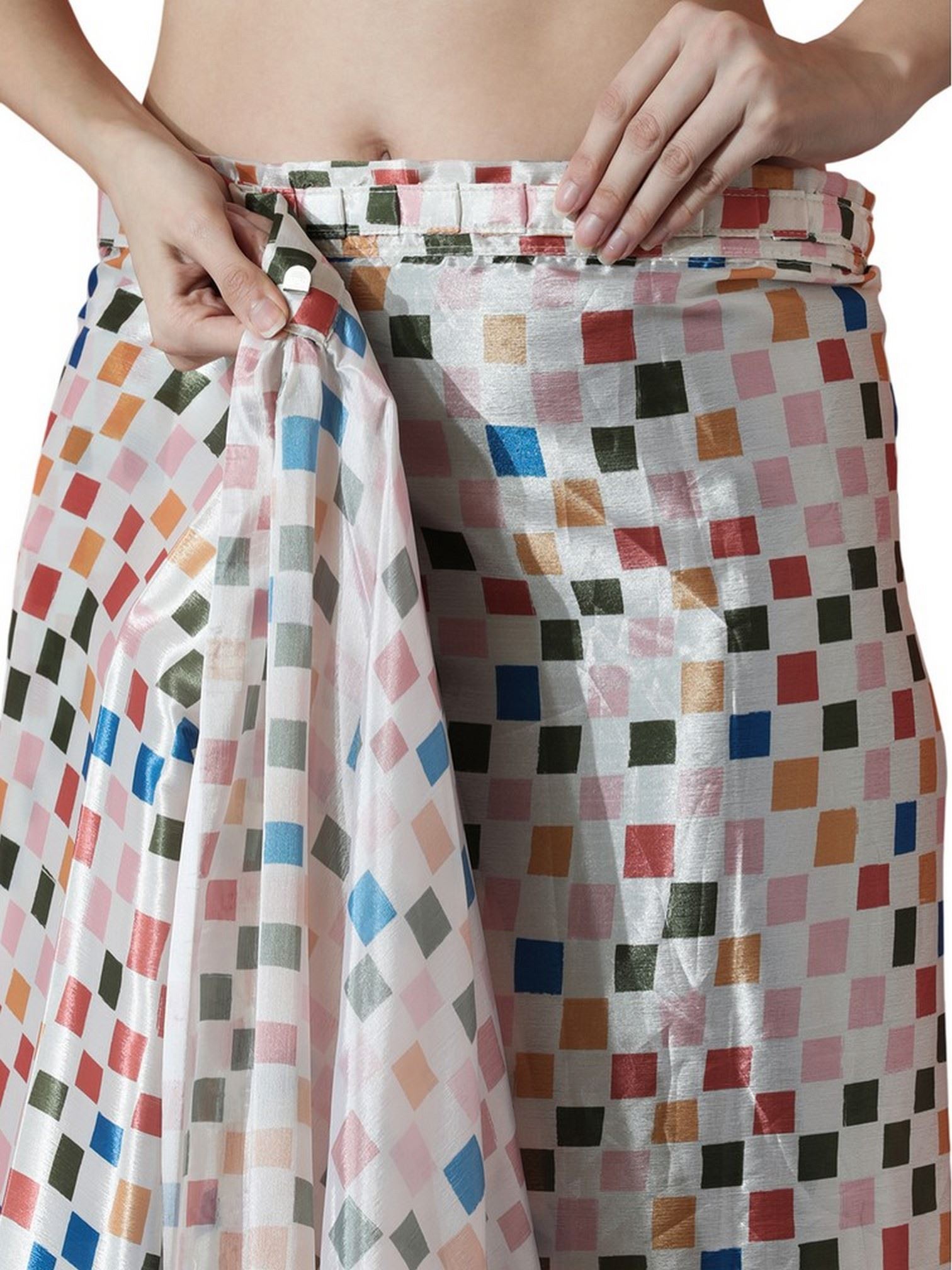 Off White Beautiful Chinon Designer Digital Printed Ready To Wear Ceremonial Saree