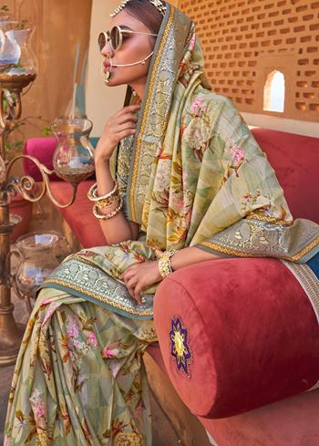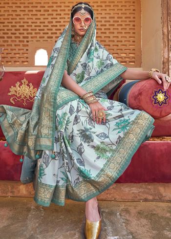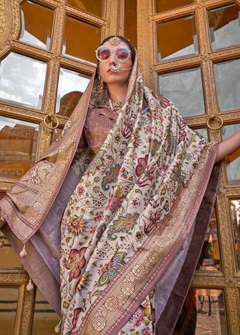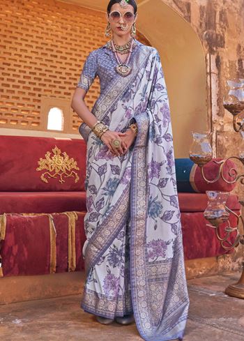 Off White Color PV Silk Saree with Smart Floral Print