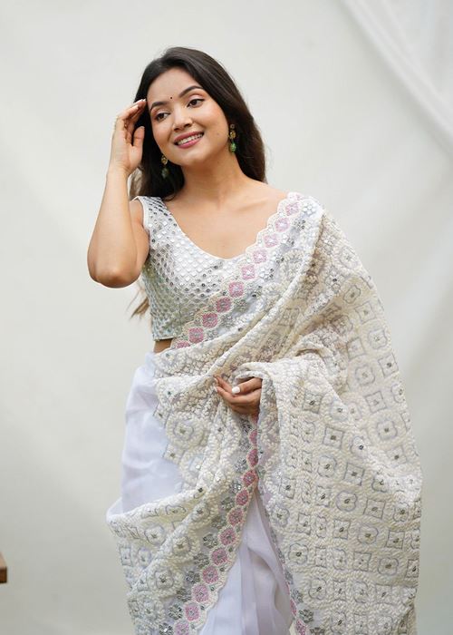 Off White Colour Soft Organza Silk Heavy Work Saree