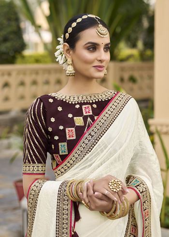 Grace meets simplicity with the Off White Georgette Plain Saree With Embroidered Lace Border from Aethnofit Fashions. Designed in elegant white georgette, this saree features a soft, fluid drape that flatters all body types while ensuring all-day comfort. The delicately embroidered lace border brings a refined touch, making it ideal for intimate gatherings, ceremonies, or office parties.