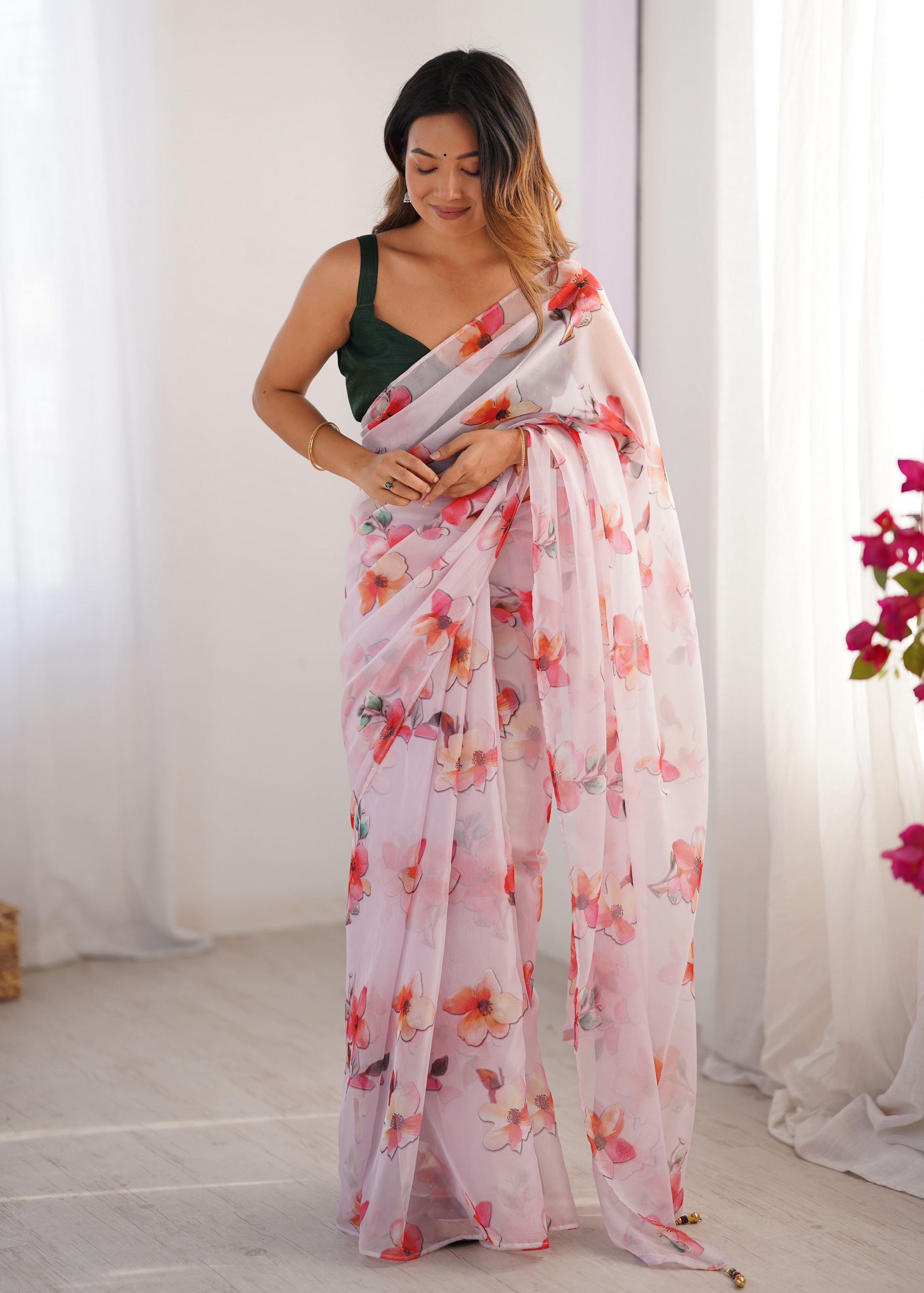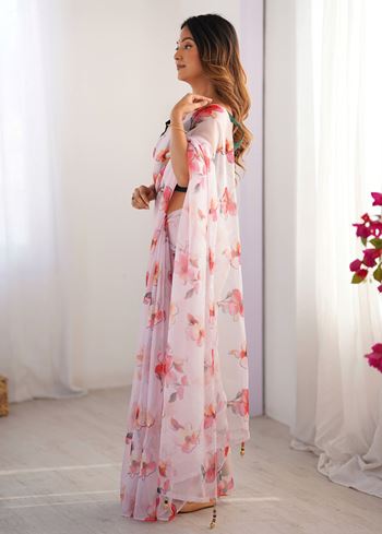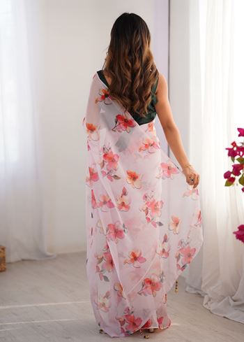 Perfect for both daytime and evening gatherings, this saree is designed for the modern woman who values comfort without compromising on style. Pair it with pearl jewelry or bold statement accessories for a polished and fashionable look that will make you the center of attention.Whether you’re attending a wedding function, a festive party, or a stylish evening get-together, this off white organza printed saree ensures you leave a lasting impression with grace and charm.
