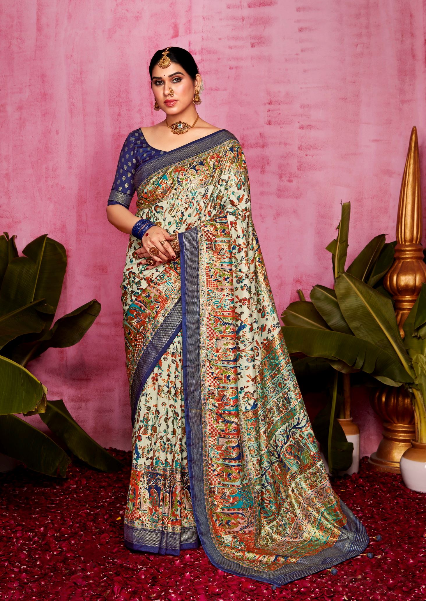 Off White Woven Designer with Polka Dot and Printed Tussar Silk Saree