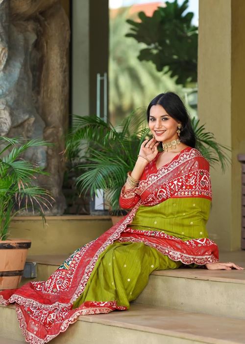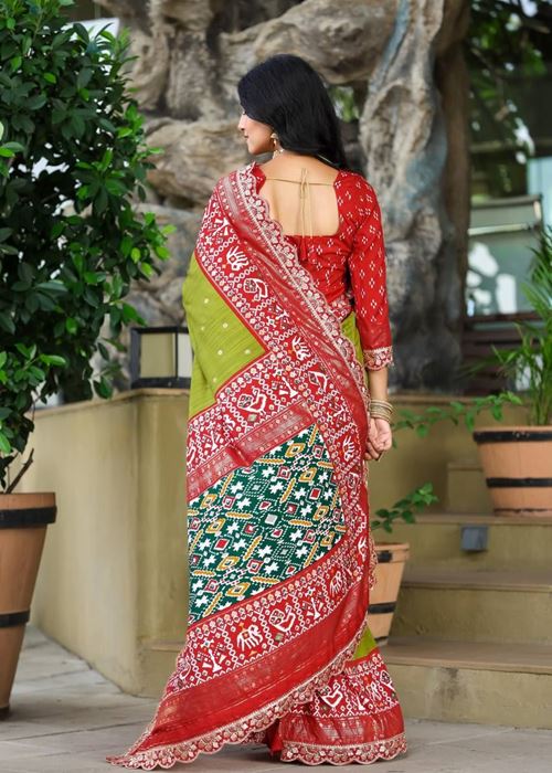 Olive Colour Mercerized New Sigma Silk Ikkat Saree