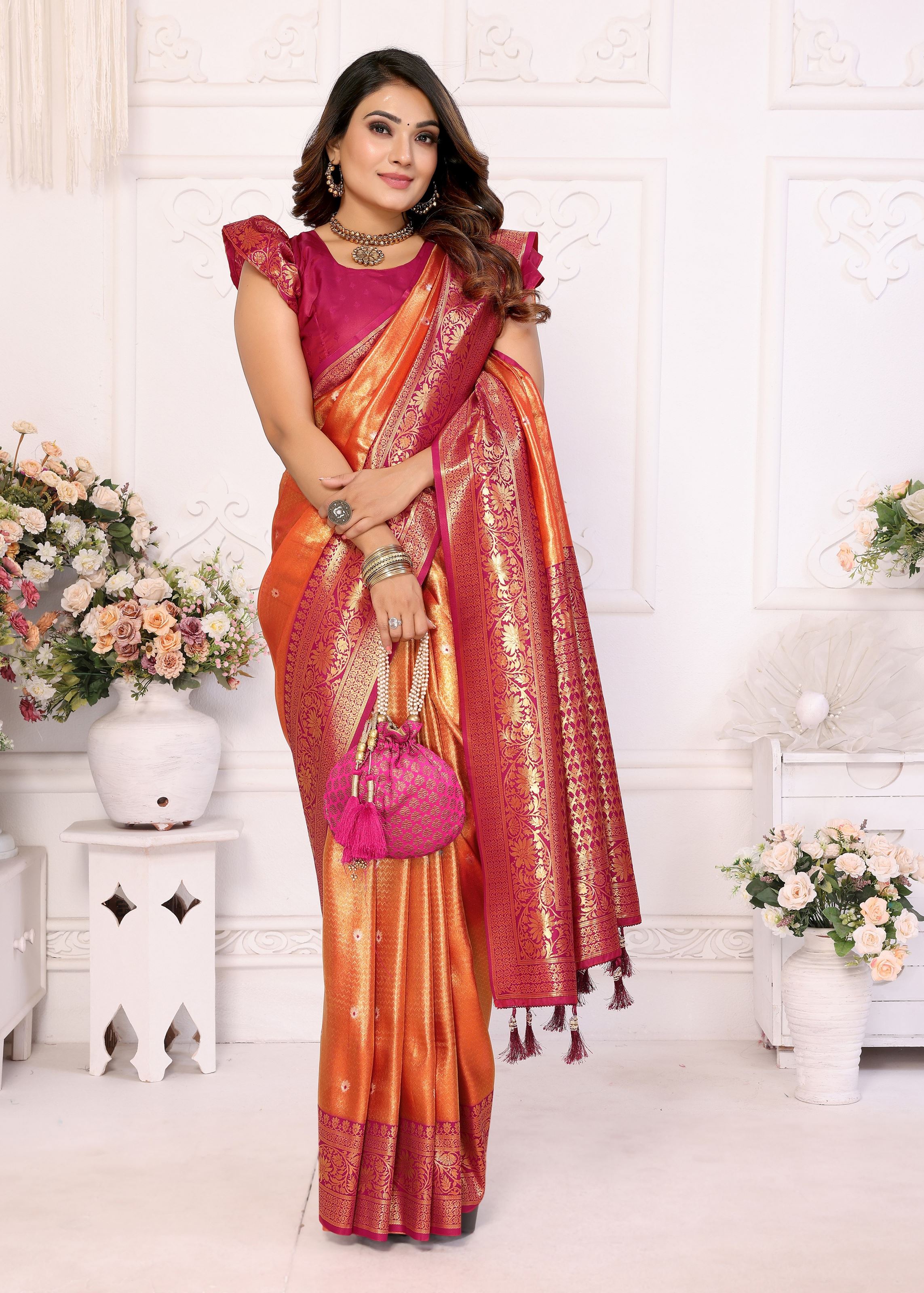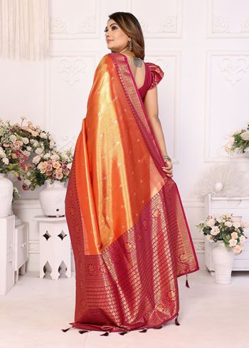 Orange Banarasi Tissue Silk Woven Jari Heavy Designer Saree
