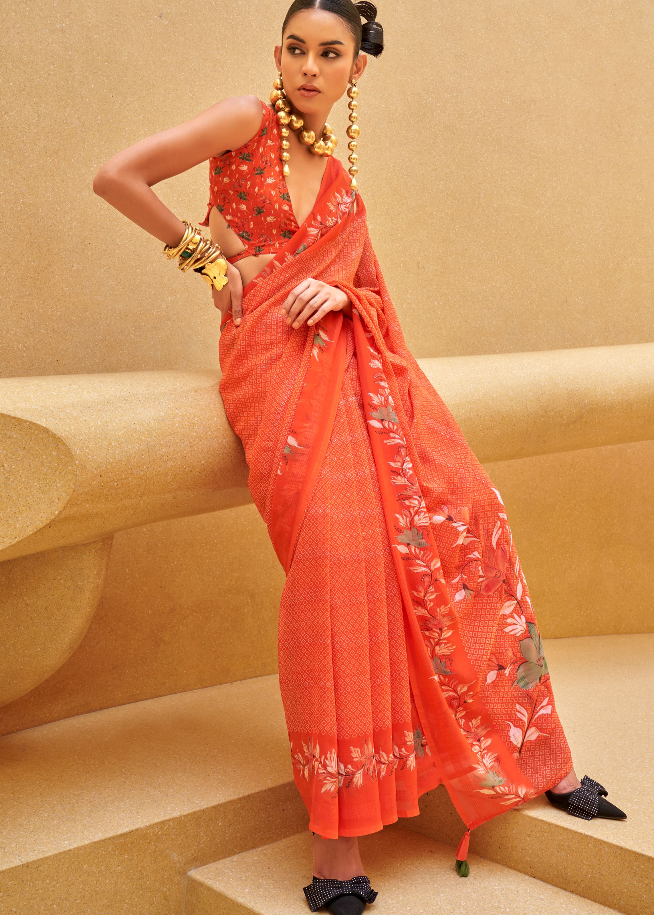 Orange Georgette Printed Saree