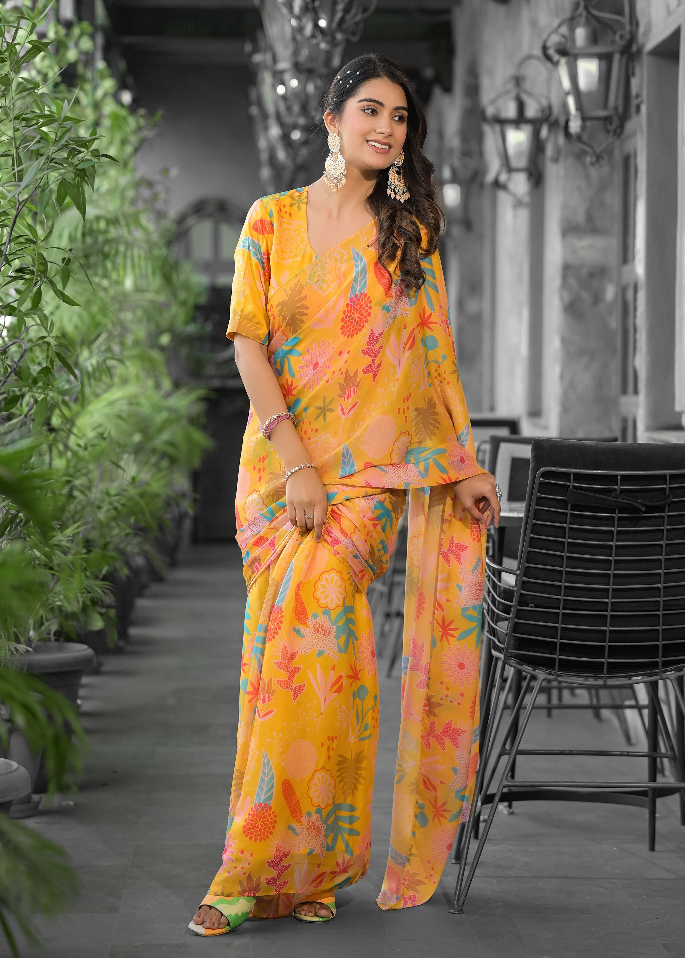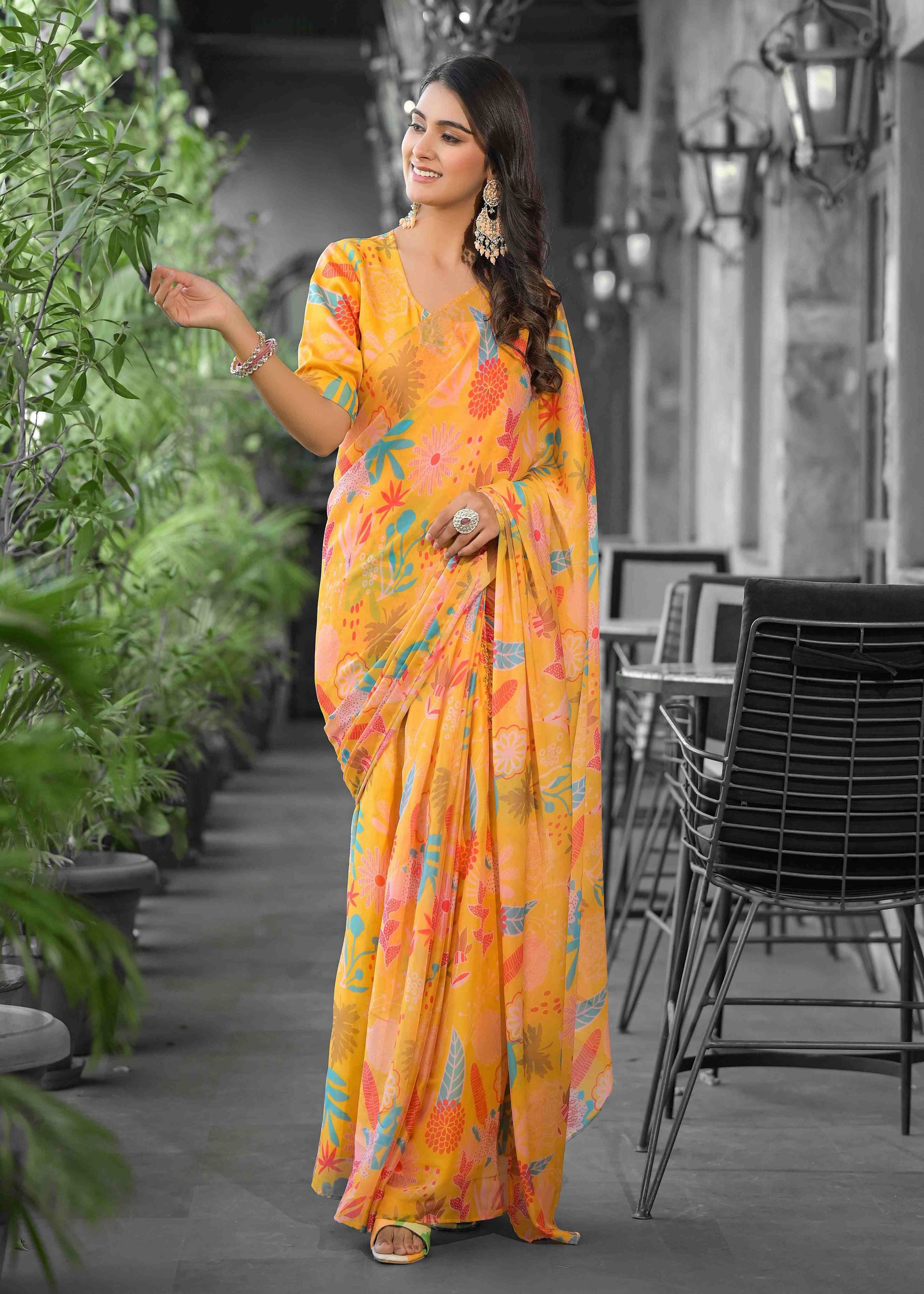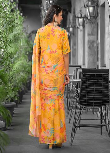 Orange Imported Georgette Designer Digital Printed Ready To Wear Gown Style Saree