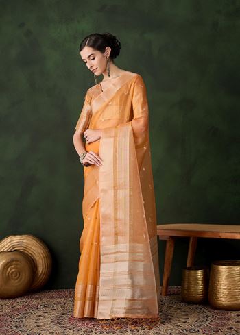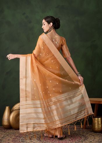 Orange Khadi Organza Ethnic Woven Designer Saree For Festive Looks