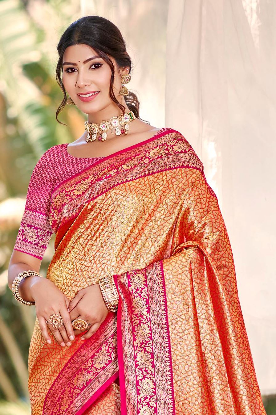 Orange Color Kanjivaram Silk Saree With Timeless Grace and Elegant Charm