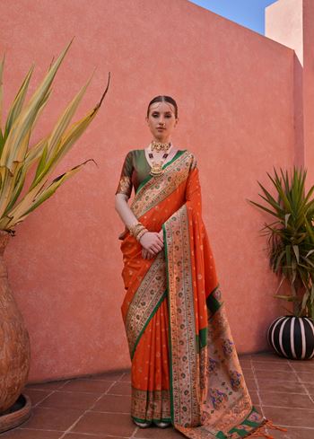 Orange Paithani Silk Saree with Paithani Pallu and Zari Butti