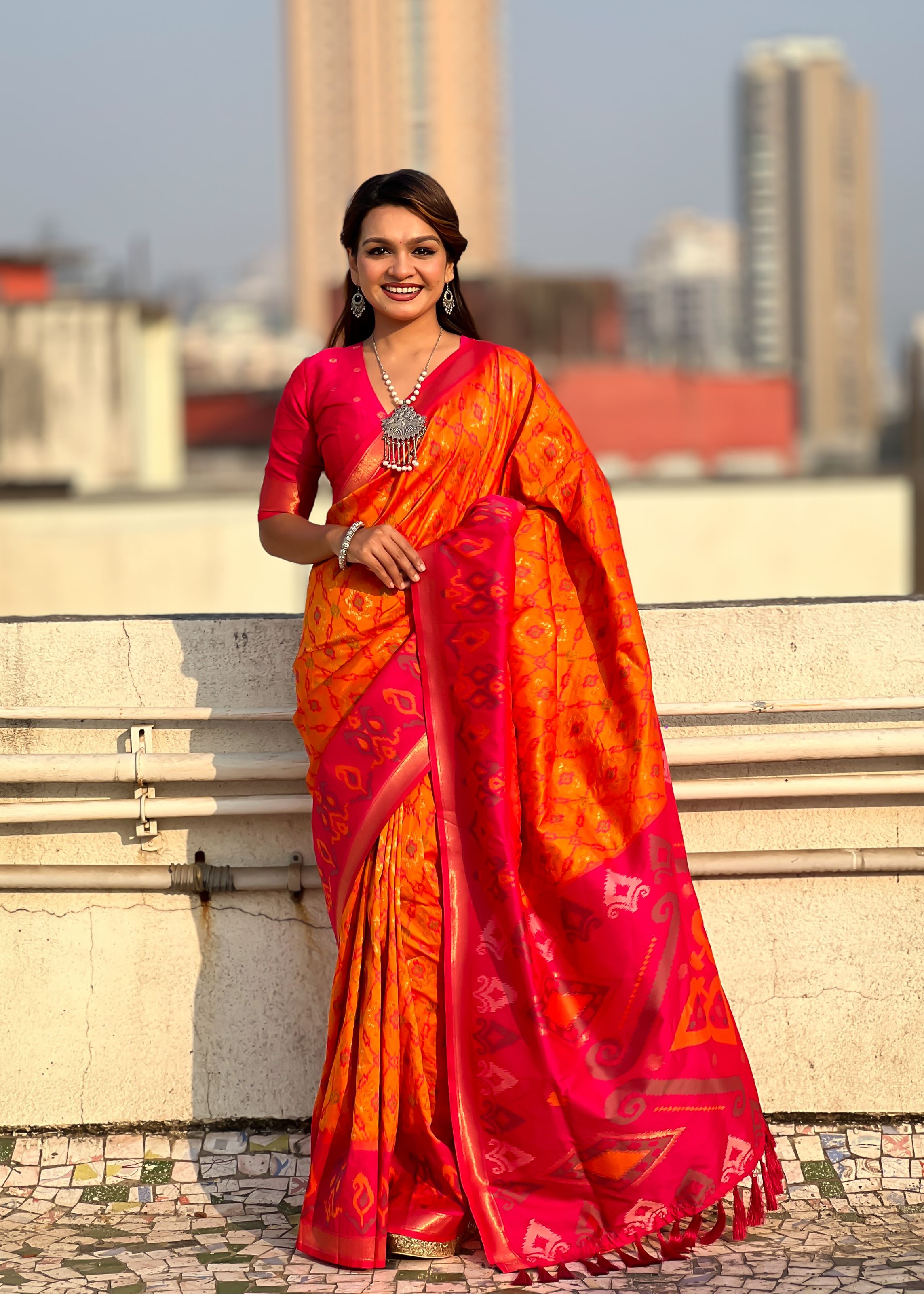 Shop Aethnofit Fashions’ curated collection of designer sarees online, traditional Indian sarees, and premium silk sarees. With worldwide shipping, including the USA, authentic ethnic fashion is delivered directly to your doorstep. Perfect for bridal sarees, party wear sarees, and trendy ethnic fashion, this Patola silk masterpiece embodies timeless elegance and festive charm.Buy the Orange Patola Silk Saree today and elevate your ethnic collection with luxurious craftsmanship, vibrant colors, and Aethnofit Fashions’ signature style.