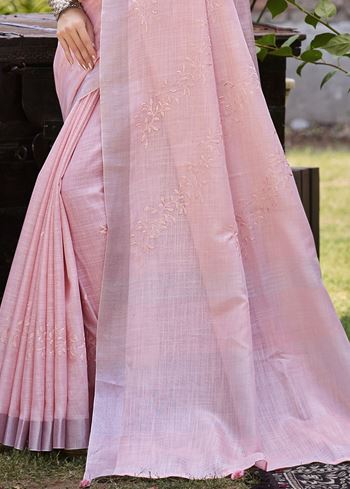 Ornate Pink Linen Festival Saree for Women