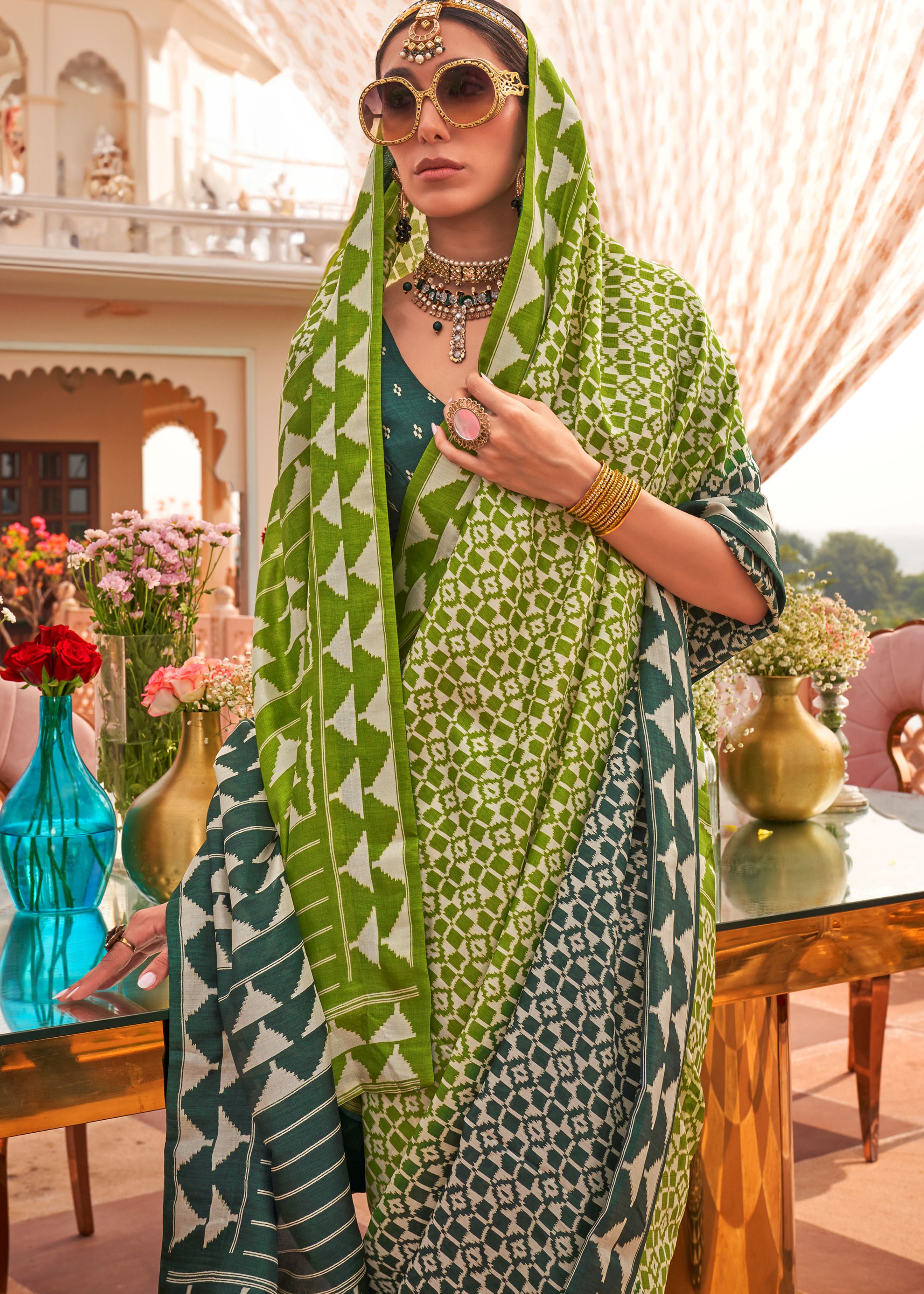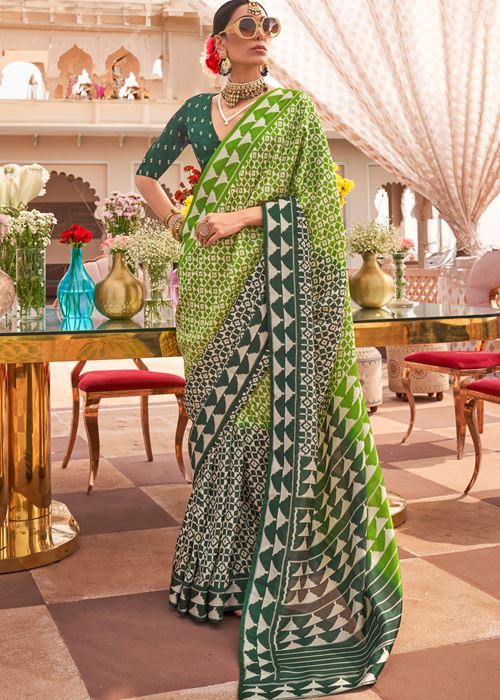 Parrot Green & Dark Green Silk Saree With Patola Print