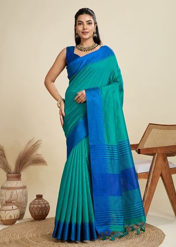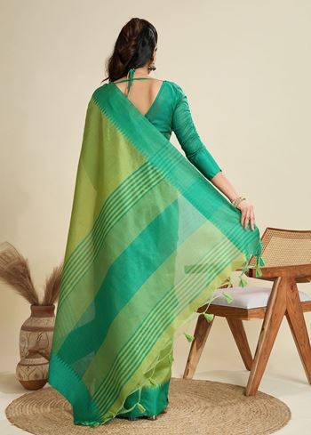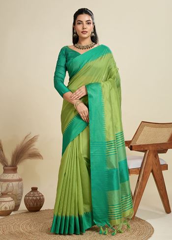 Whether you’re attending a puja, sangeet, or a festive celebration, the Parrot Raw Silk Saree with Temple Border and Striped Pallu blends cultural beauty with standout style — a timeless piece for the modern woman rooted in tradition.