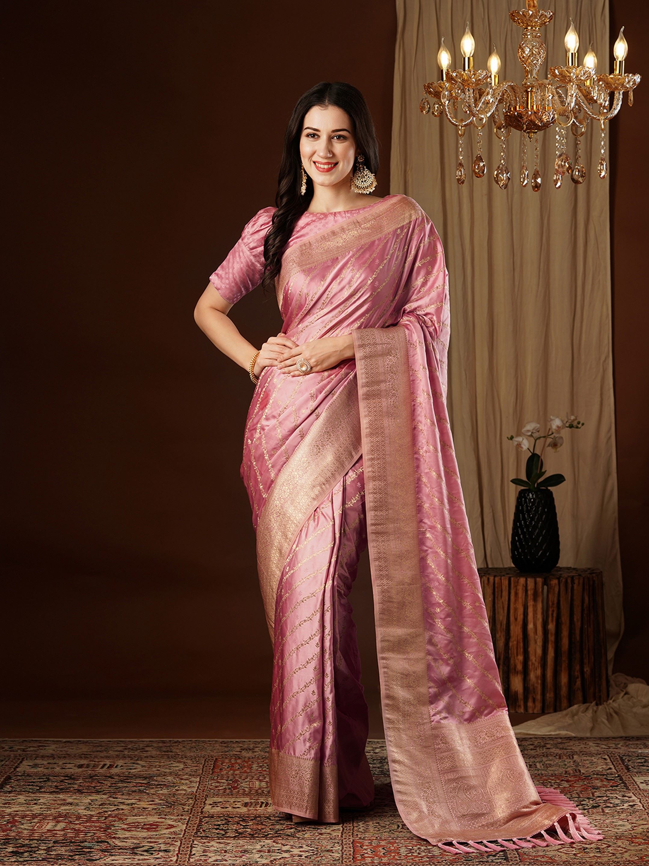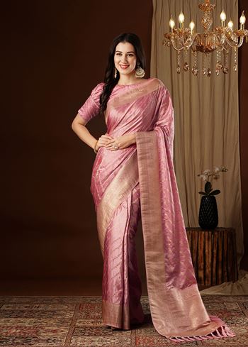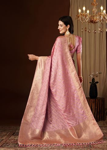 Peach Glamorous Jacquard Designer Satin Silk Saree