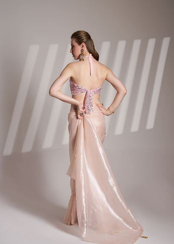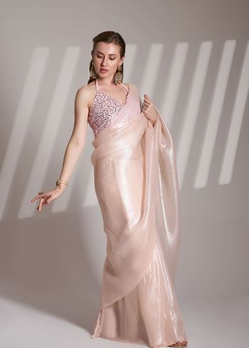 Peach Glamorous Twill Net Solid Designer Partywear Saree