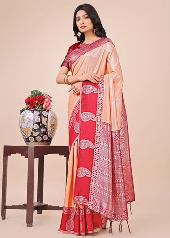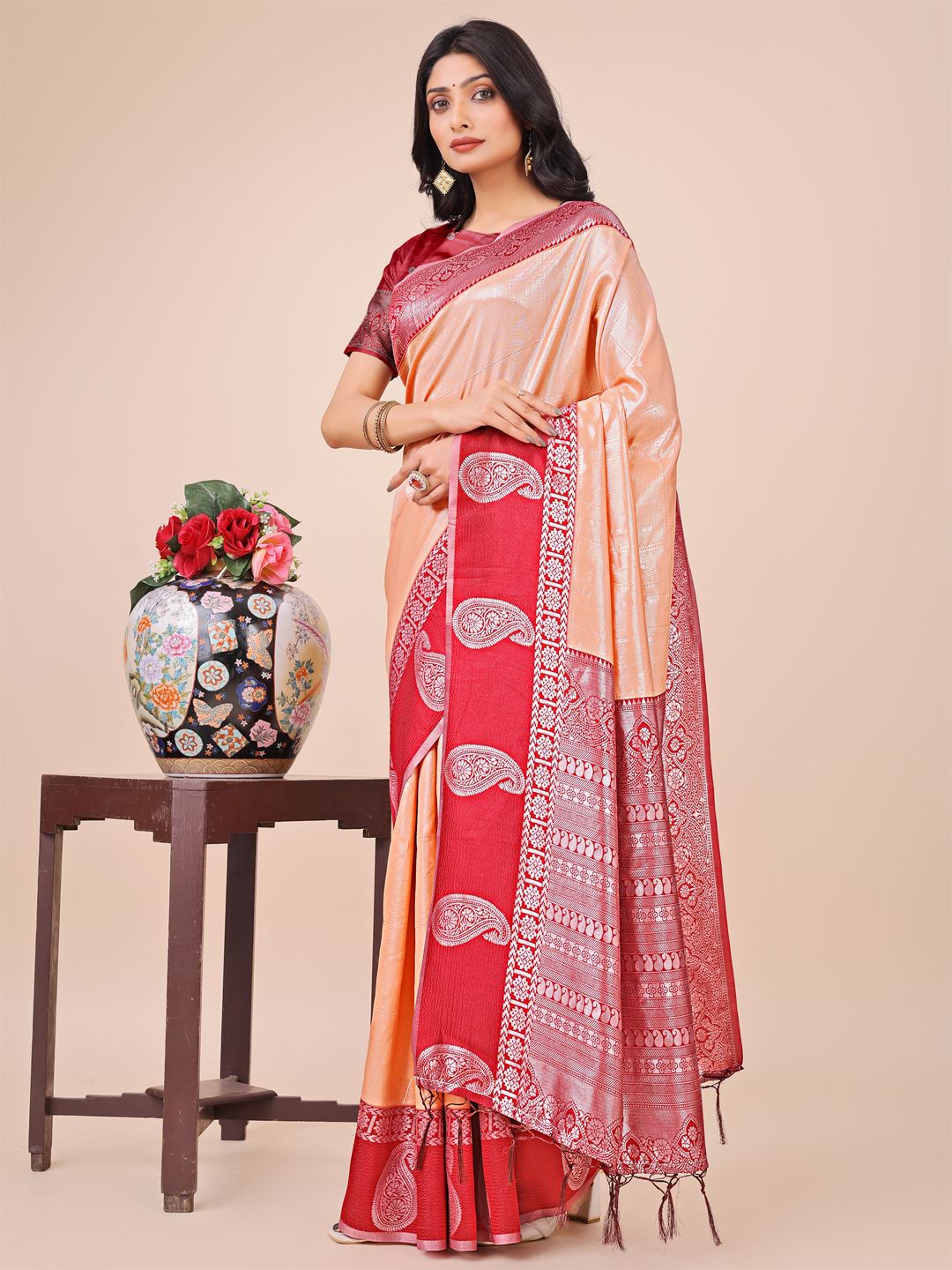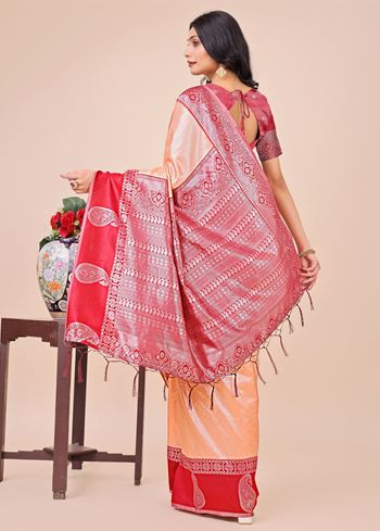 Peach Lichi Silk Woven Designer Festive Graceful Saree