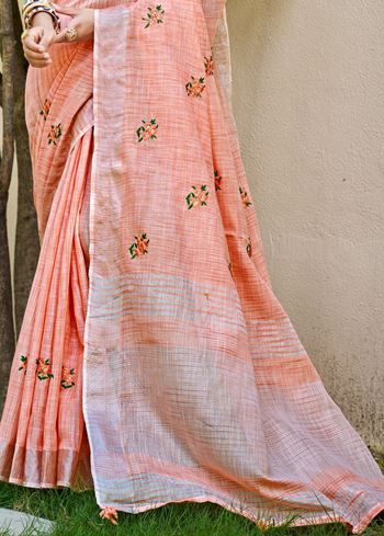 Peach Linen Saree With Heritage Vibes and Modern Appeal