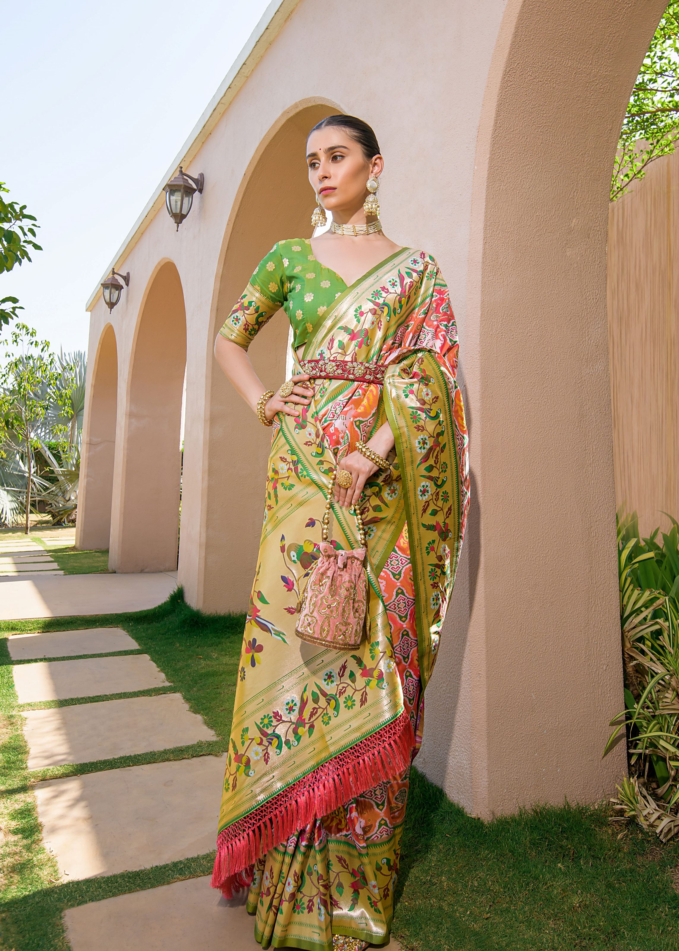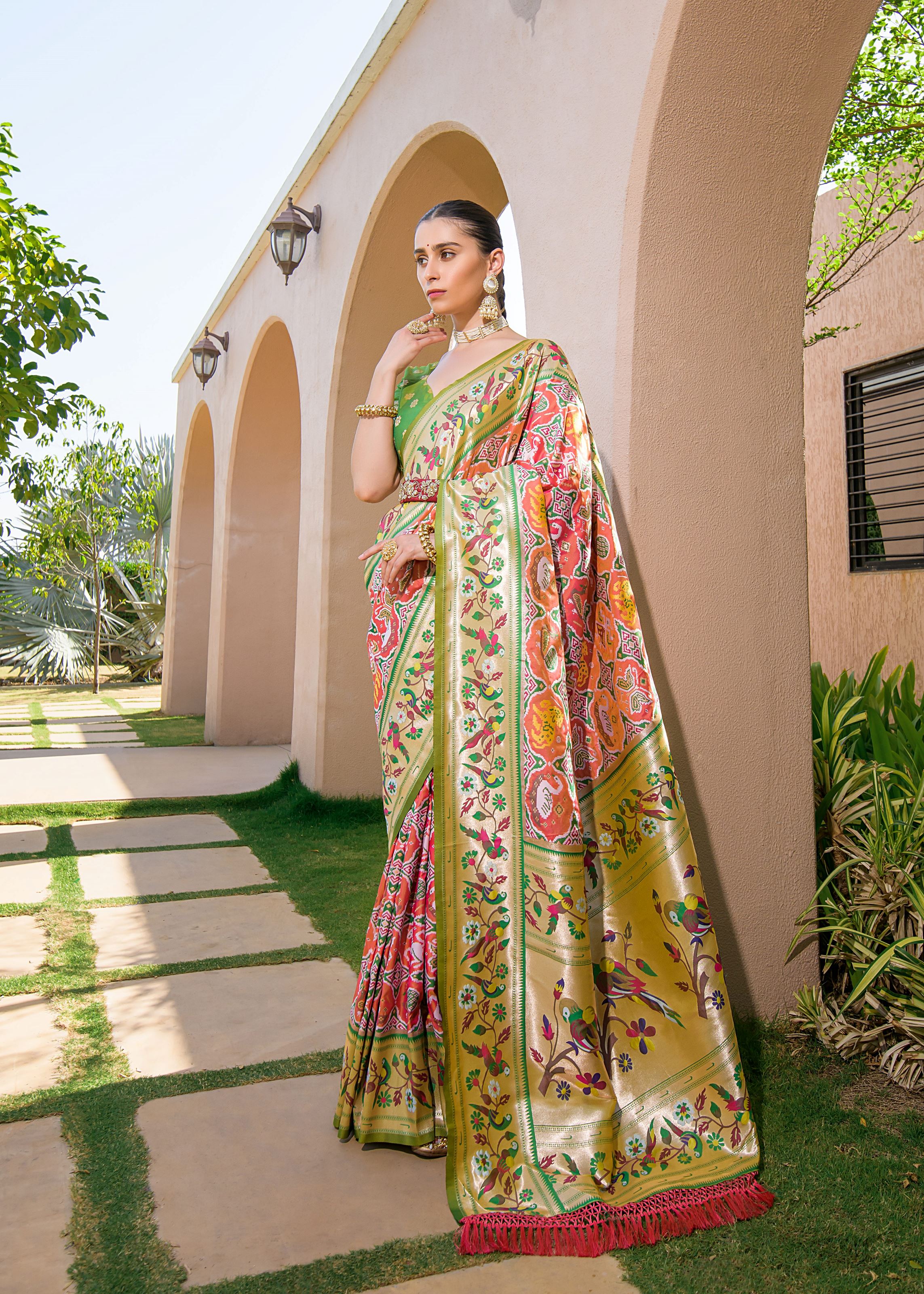 Peach Paithani Silk Saree with Meenakari Zari and Pallu