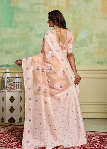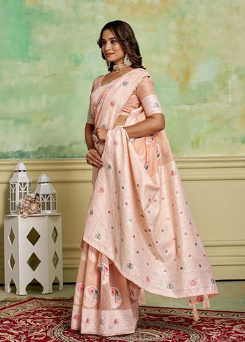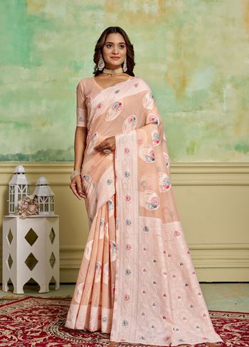 Peach Rich And Elegant Woven Designer Cotton Fabric Saree